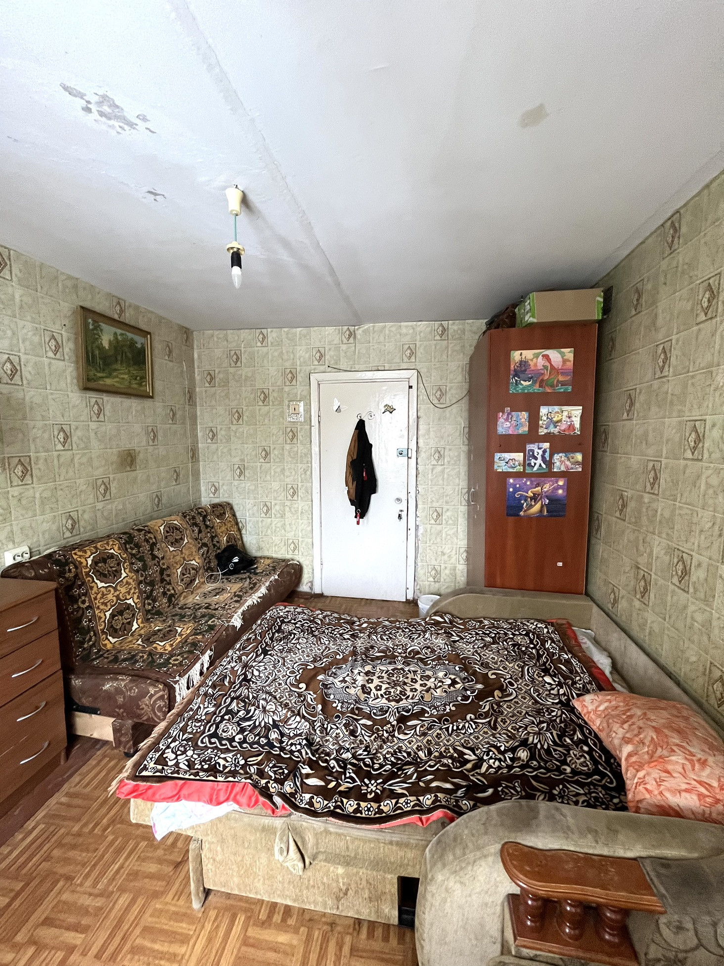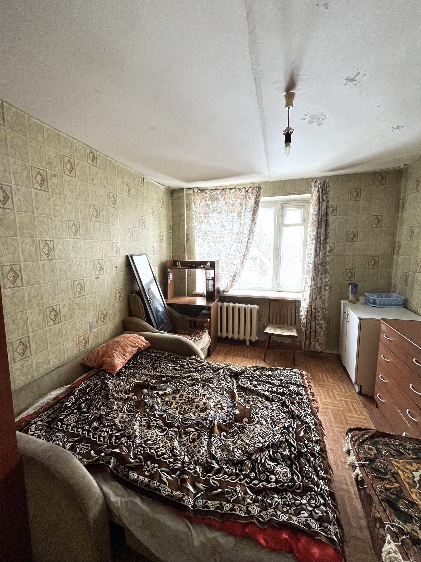 Комната теплая, не угловая, без долгов , расположенная на 3-этаже кирпичного дома.
