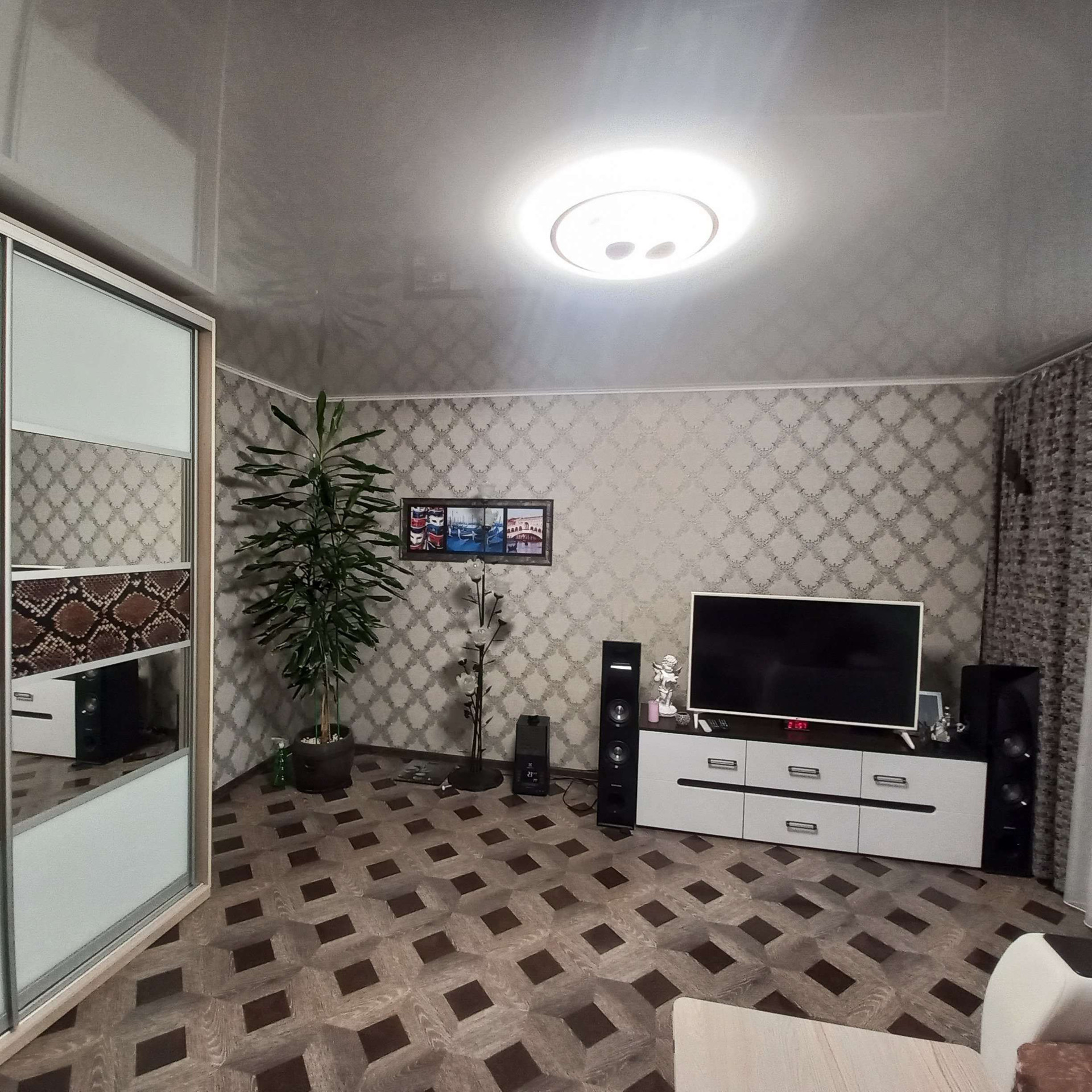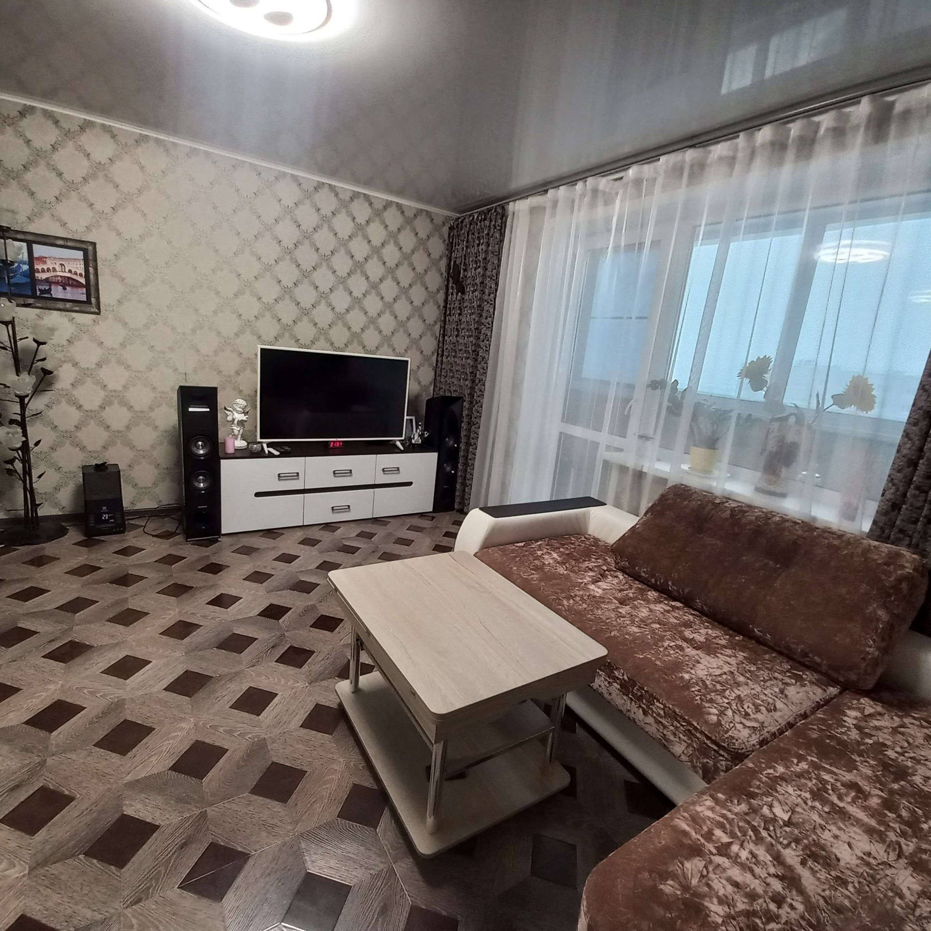 Квартира очень светлая, тёплая, просторная. Сделан качественный ремонт. Поклеены дорогие обои, на полу ламинат, ванная комната выложена кафельной плиткой. Установлены хорошие межкомнатные двери. Всё делалось со вкусом, для себя.