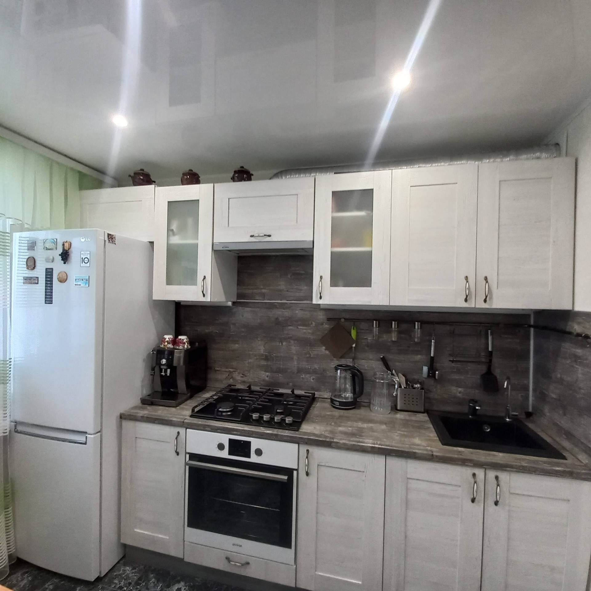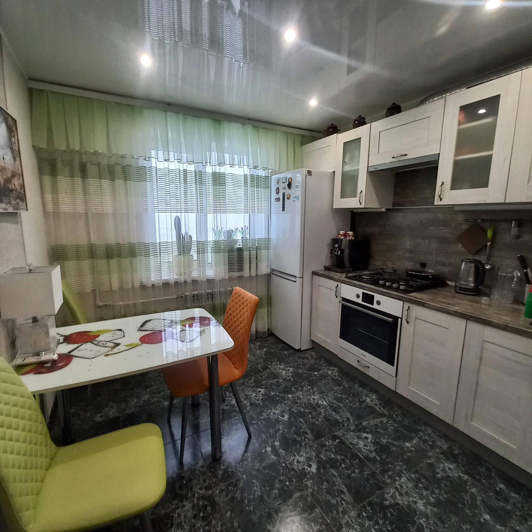 На кухне качественный кухонный гарнитур. Остаётся в подарок новым хозяевам!