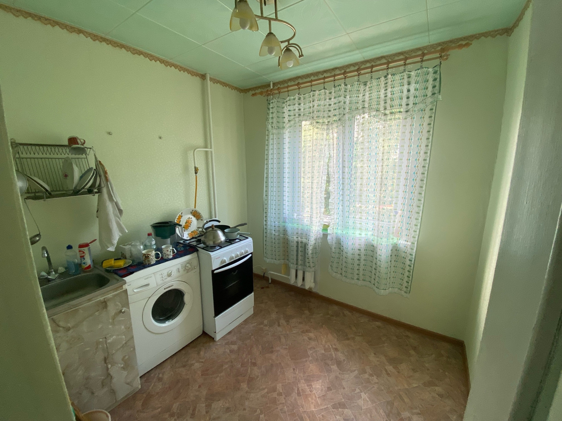 В квартире 2 комнаты и совмещенный санузел, окна выходят во двор. Есть балкон. Окна ПВХ. Произведена замена труб. Стоят счетчики на воду. В квартире никто не проживает.