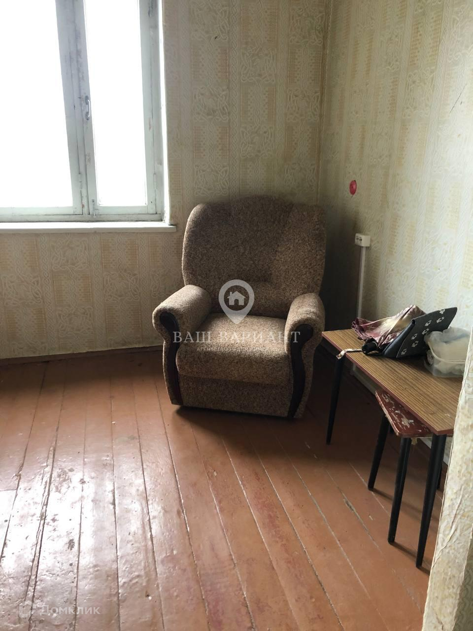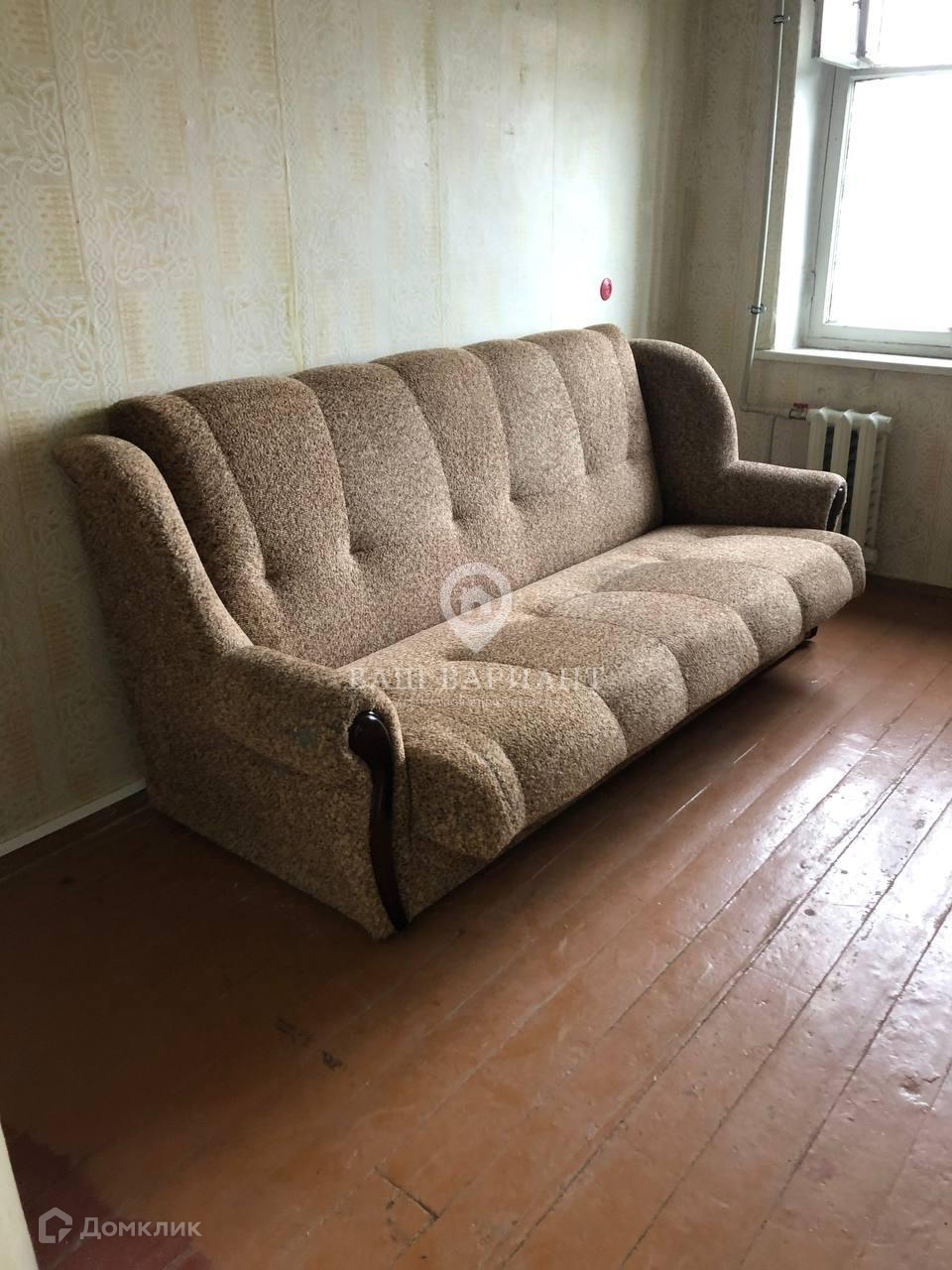 Комната светлая и теплая. Из мебели: диван и кресло. В квартире поменяны трубы, стоят счетчики. В подъезде новый лифт.