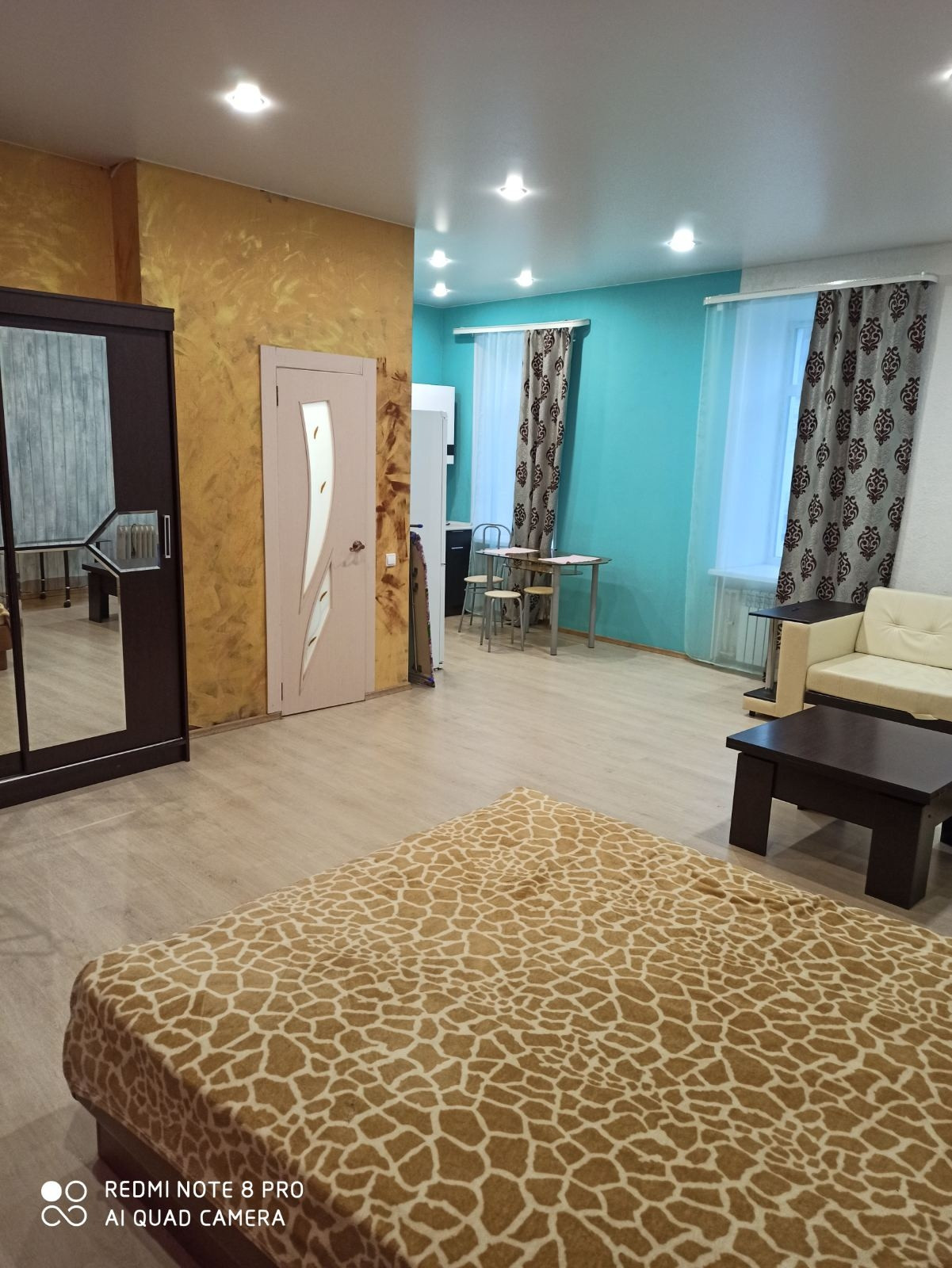 Мебелирована все что изображено на фото (кровать двухспальная с матрасом, диван-кровать),