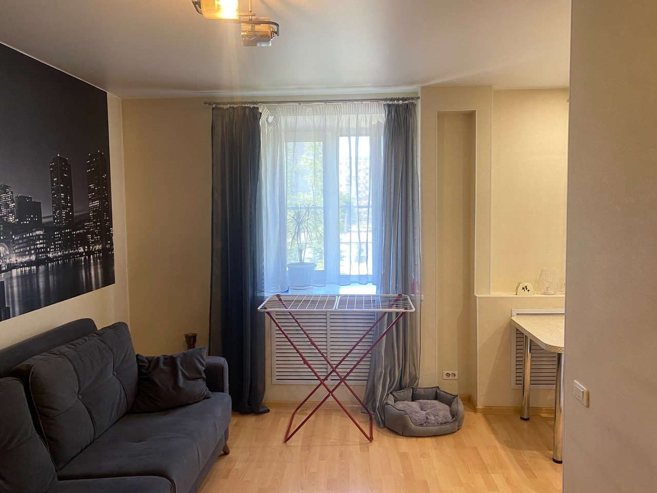 В квартире остается вся мебель, холодильник и стиральная машина.