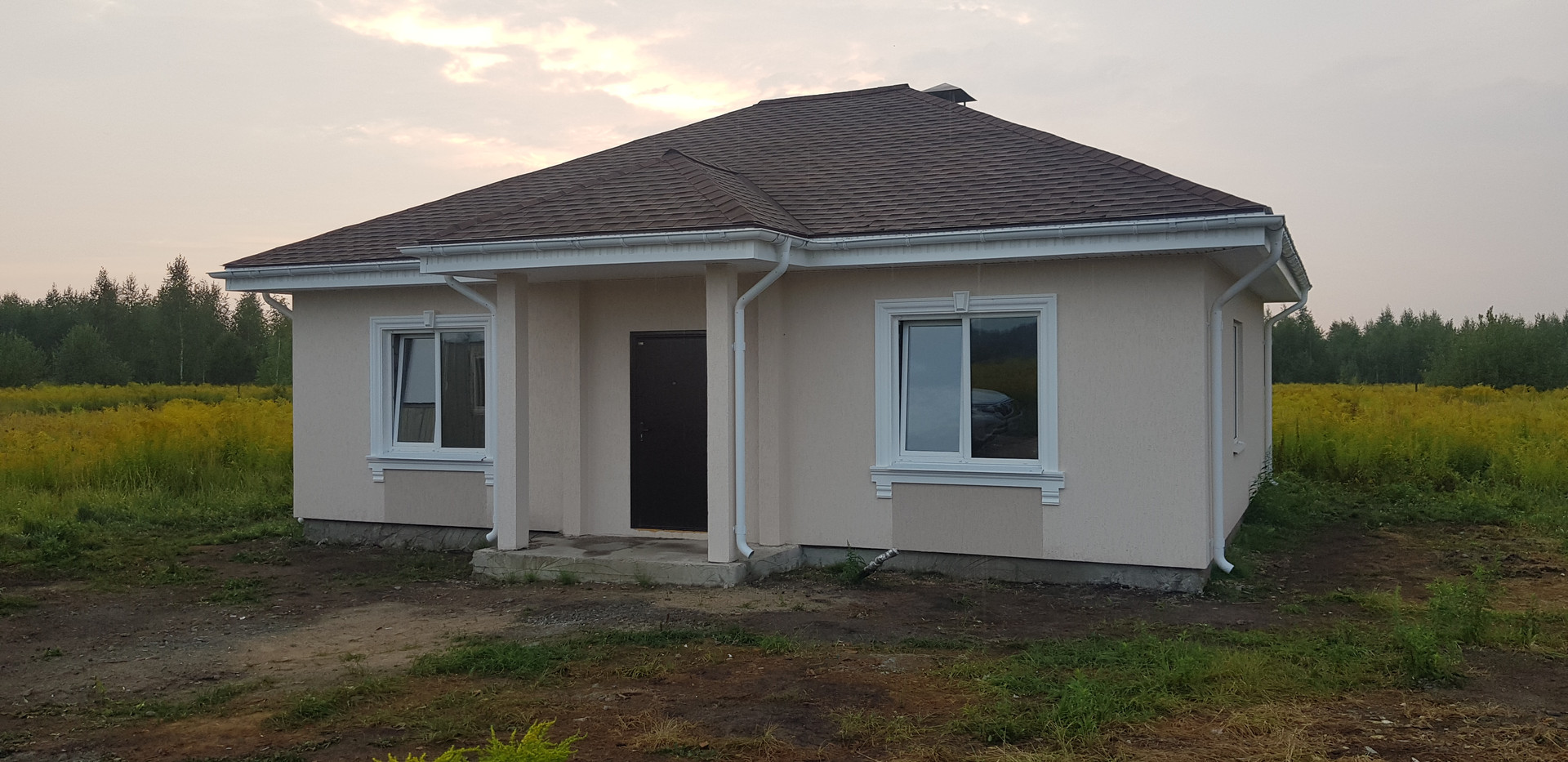 КРОВЛЯ: мягкая кровля с отделкой карнизов пластиковыми софитами и утеплением минеральной плитой 150 мм+ водосточная система.