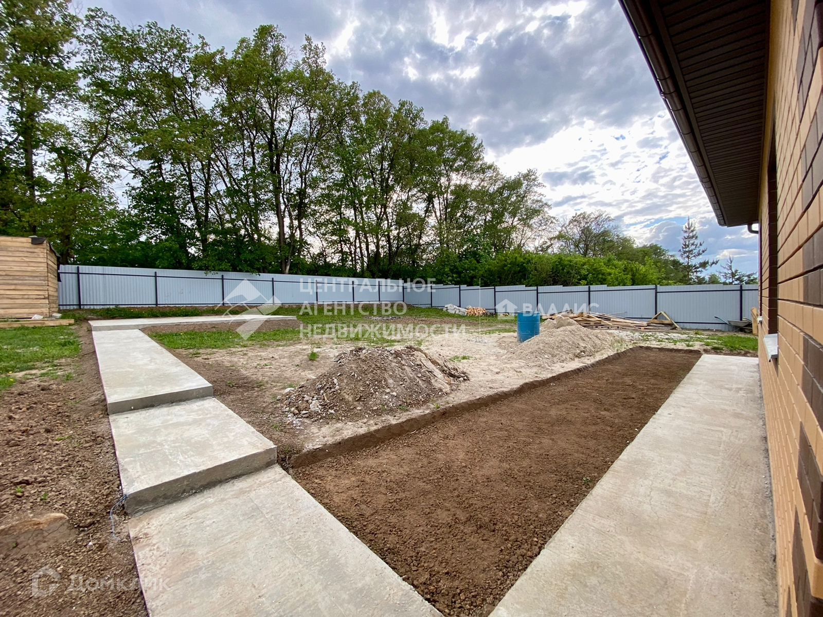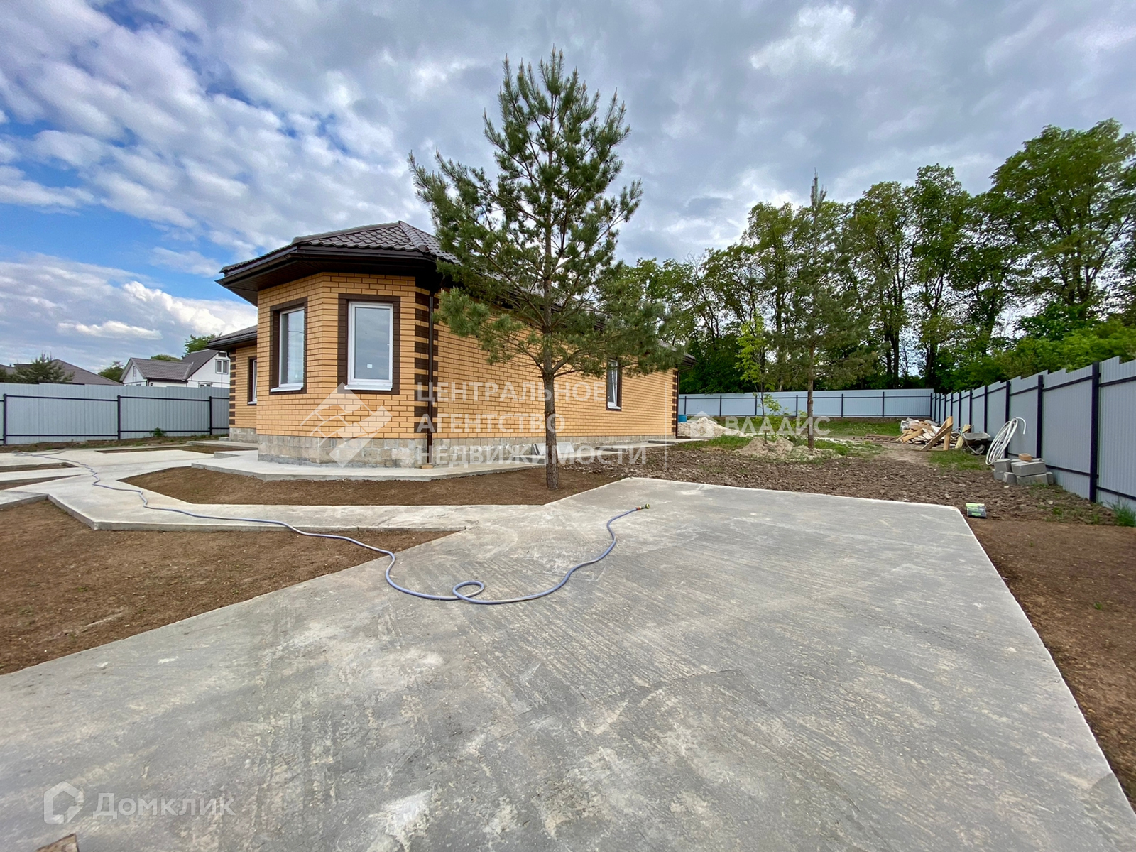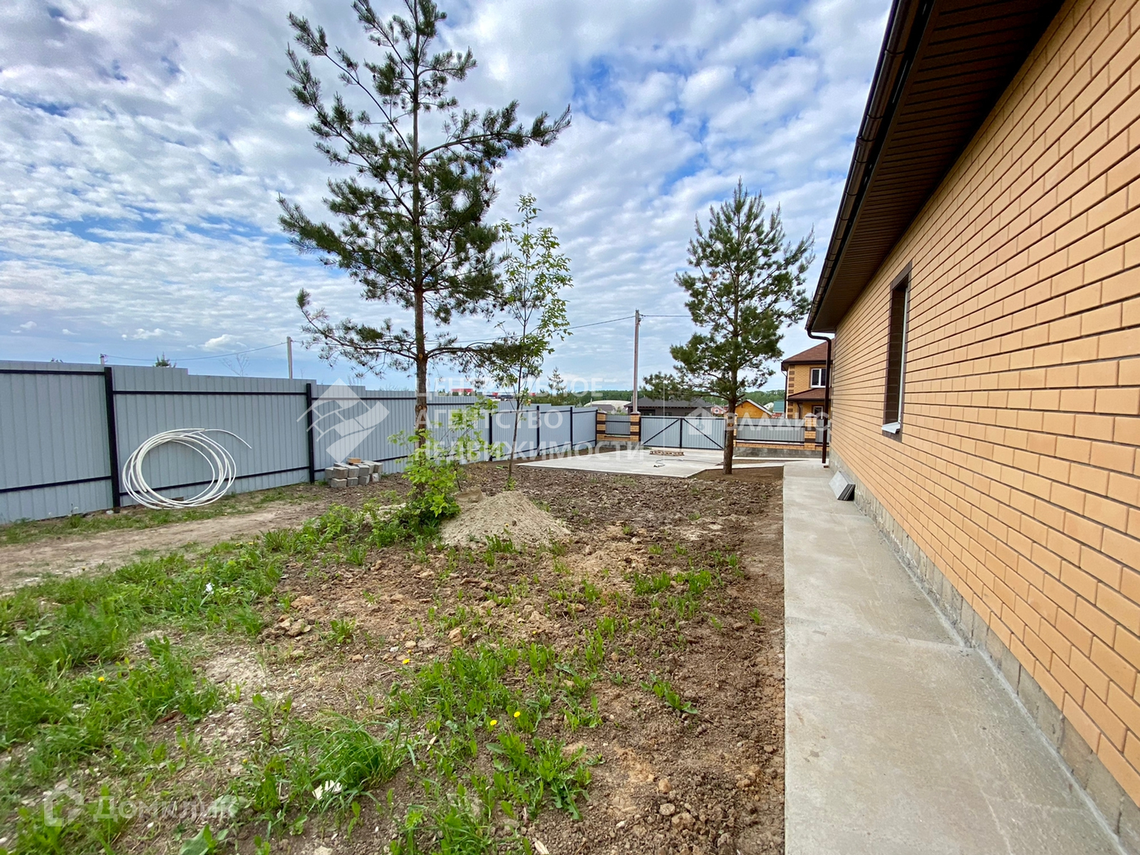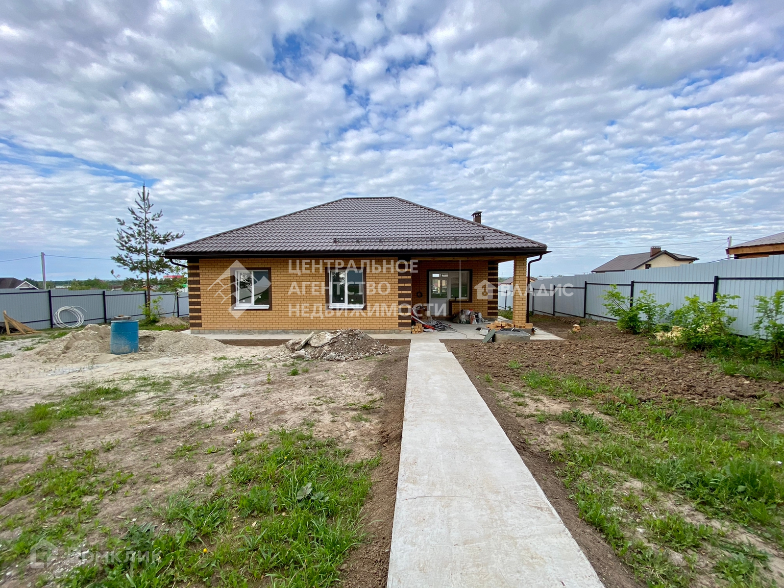 Свет и вода заведены в дом, скважина глубиной 22 метра. Дом построен из блоков и обложен кирпичом. Крыша - металлочерепица. Территория в круг огорожена забором.