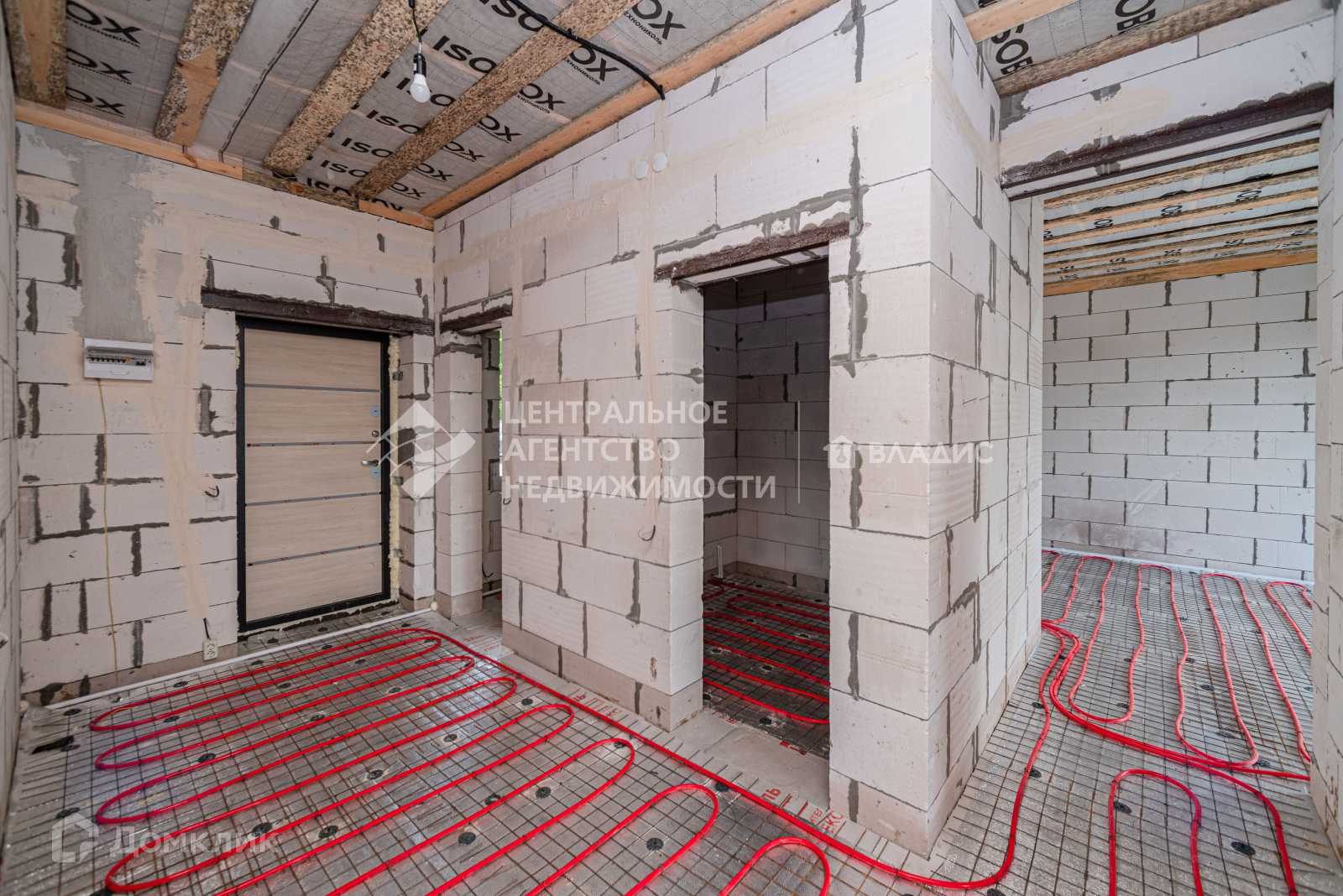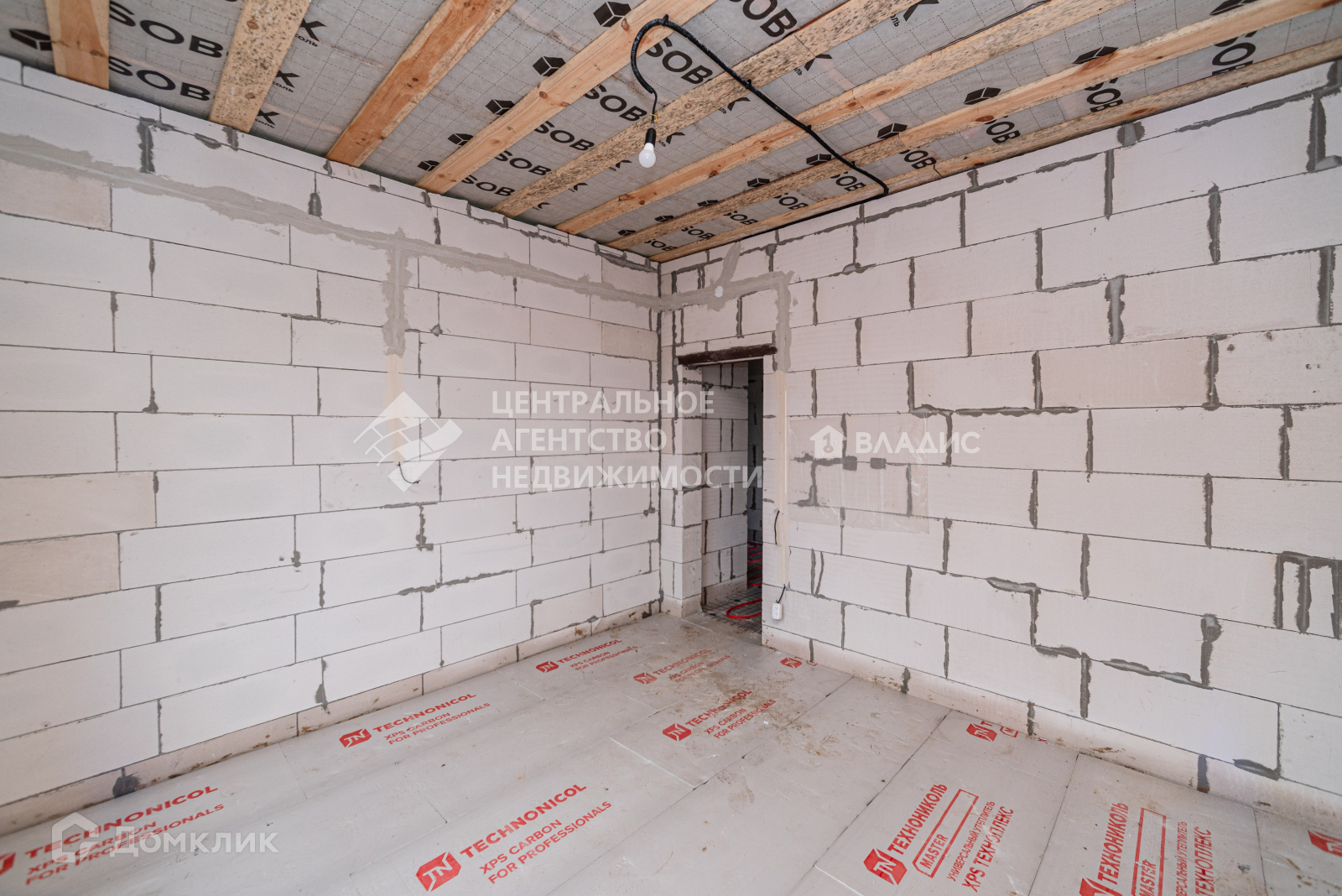 Электроснабжение – 5 Квт., ввод кабеля в дом, внутренняя разводка кабеля по стенам с установкой розеток, выключателей, патронов, блока с автоматами.