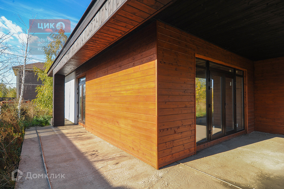 Фасад дома отделан декоративной штукатуркой , так же используются элементы дерева Подшивка кровли также выполнена натуральным деревом. Пластиковые окна, три выхода из дома на веранду.
