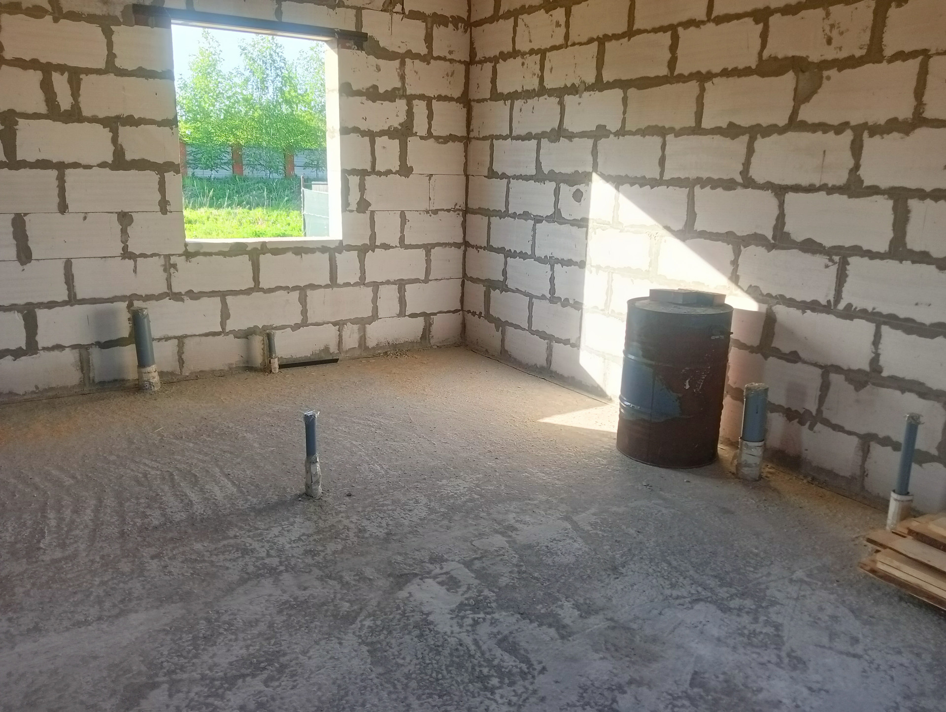 Просторный недостроенный дом в Ходынинских двориках-2. Монолитный фундамент 2023 года заливки. Высокий цоколь. Высокие потолки 3,2 м. Свободная планировка. Выведены трубы под сантехнику. Отличное месторасположение: первая улица, рядом остановка общественного транспорта. Дом не зарегистрирован. Можем достроить  под конкретного покупателя. Возможен обмен на недвижимое и движимое имущество)))