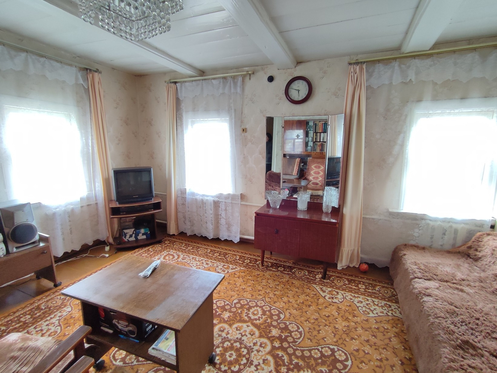 В доме одна большая комната и 2 маленькие, кухня, совмещённый санузел, терраса. Центральное водоснабжение. Отопление АОГВ, колонка на горячую воду.