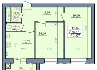 Продается 2-ком. квартира, 62.9 м2