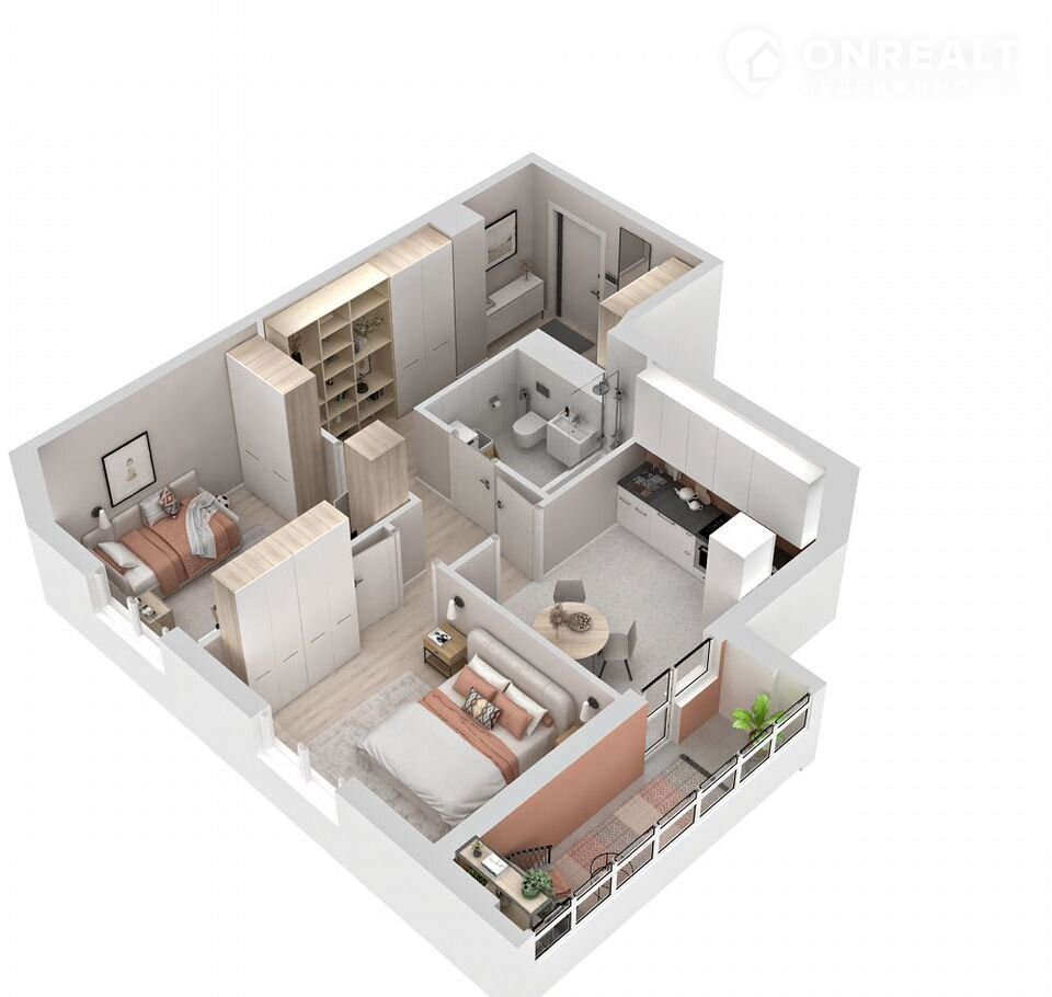Совмещённый caнузeл — функциoнaльное решение, а просторная лоджия 5.48 кв. м с выходом из кухни станет оазисом для отдыха. Окна на две стороны подарят радость солнечных лучей!