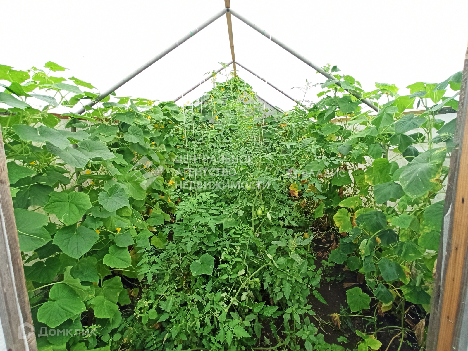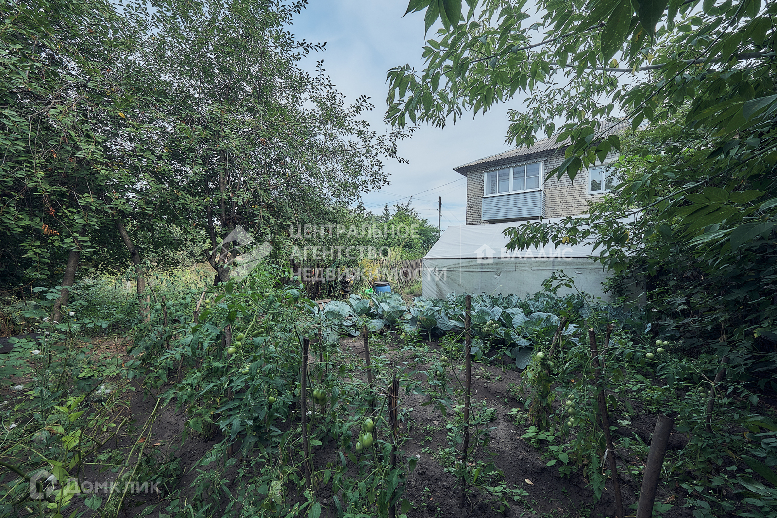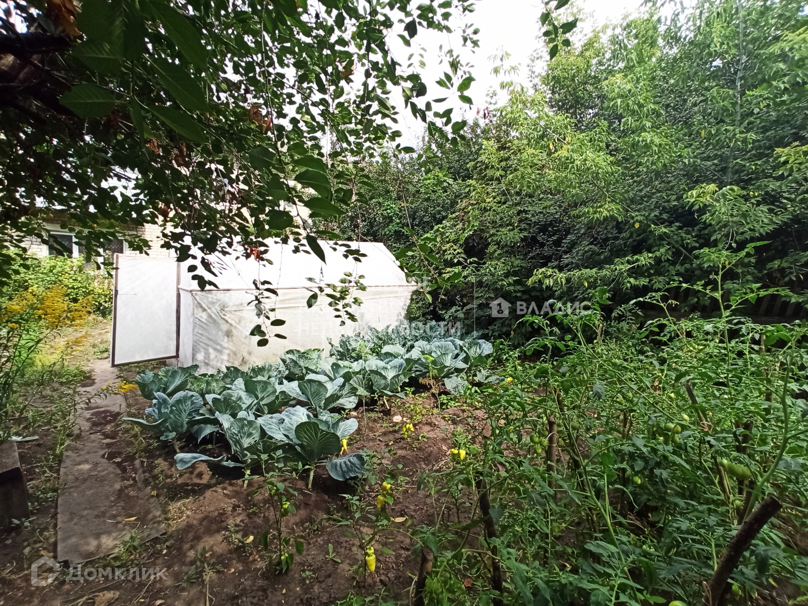 Под окнами находится  ухоженный огород с теплицей, плодовыми деревьями и местом для отдыха.