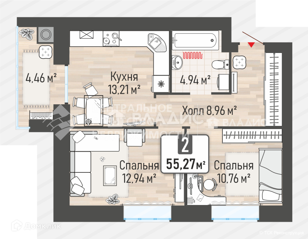 Общая площадь 55.27 м2