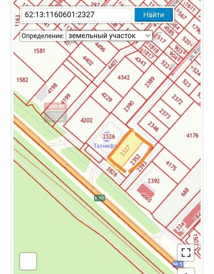 Кадастровый номер участков 62:13:1160601:2352 , 2327.