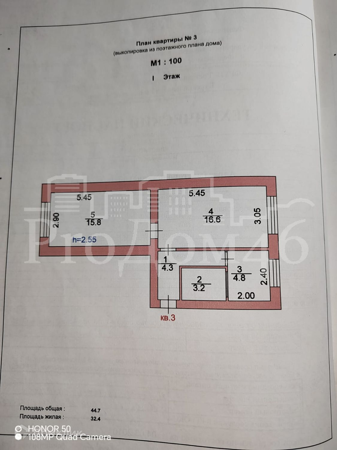 Общая площадь 44.7 м2