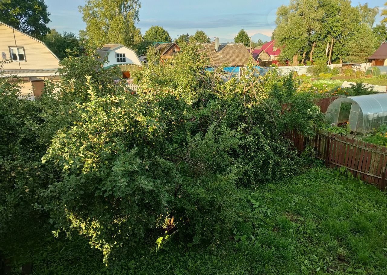 На участке растут плодовые деревья - яблони, малина.