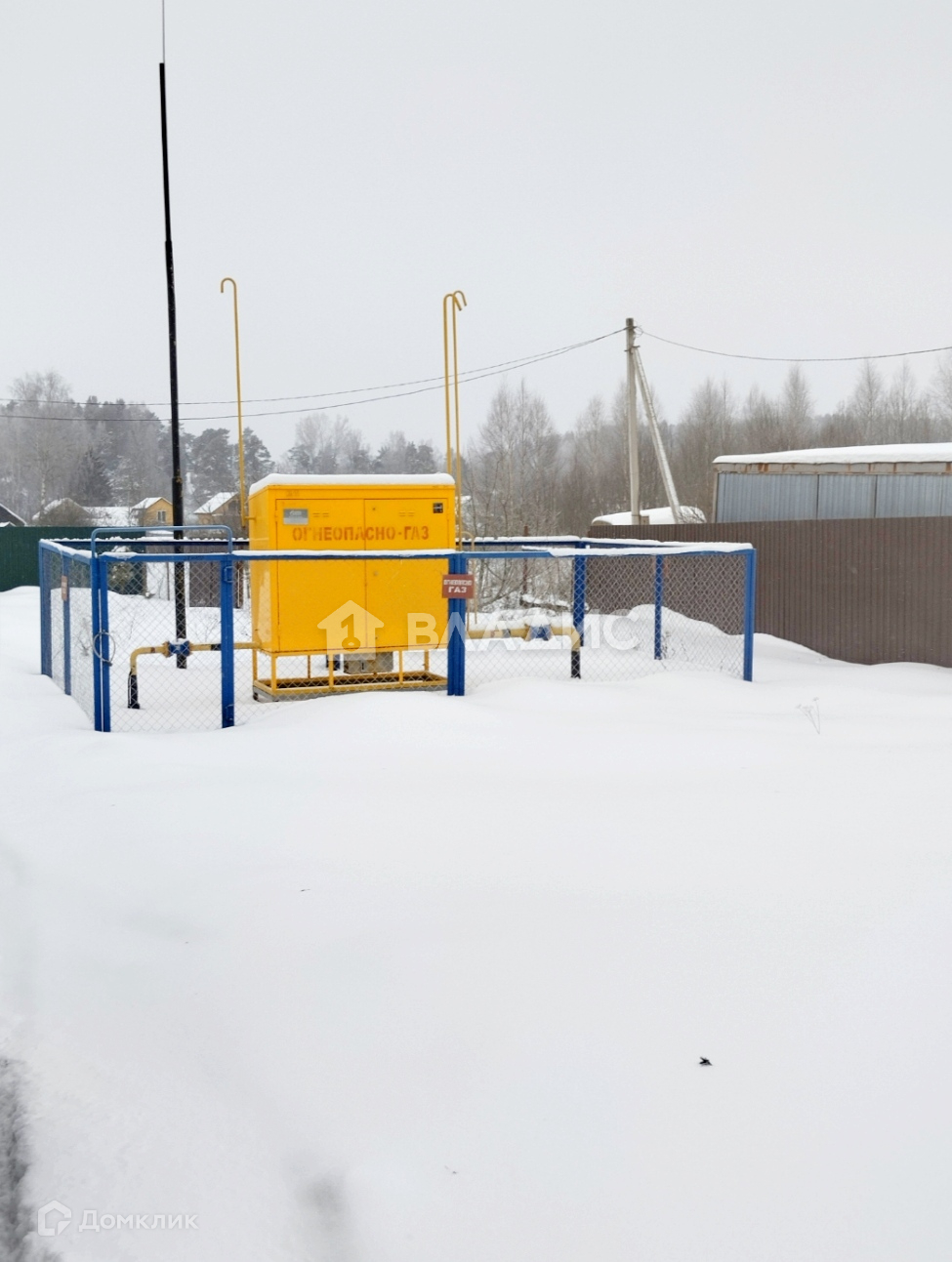 Электричество подключено, за забором расположена точка подключения к газу.
