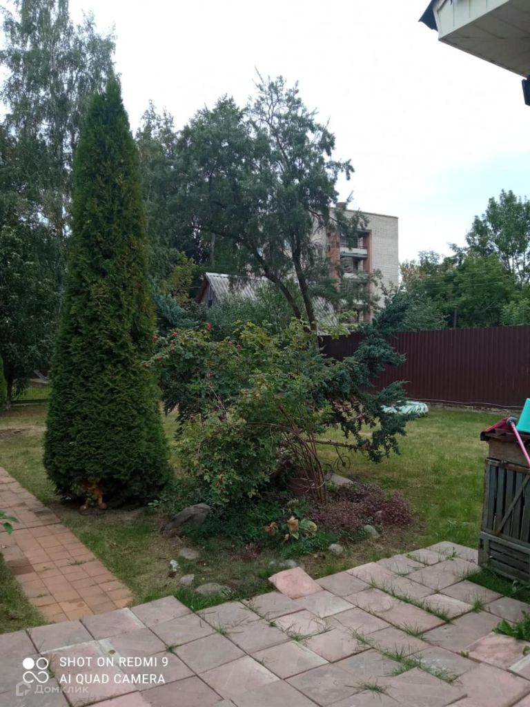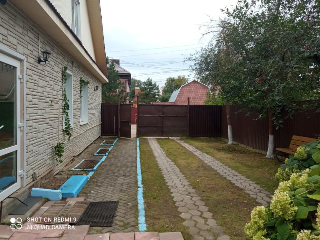 Огороженный участок 8 соток с оформленными зонами отдыха, газоном, цветочными клумбами и дорожкой, выложенной брусчаткой.