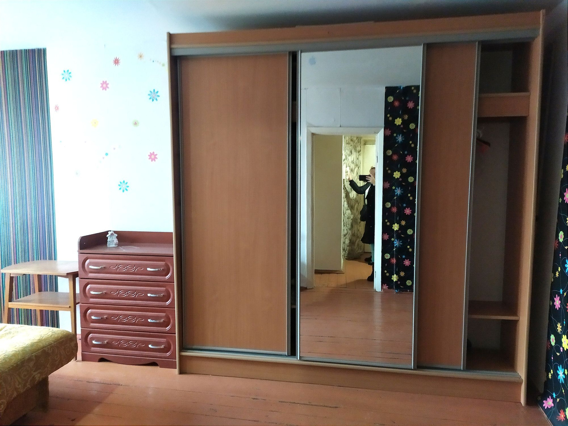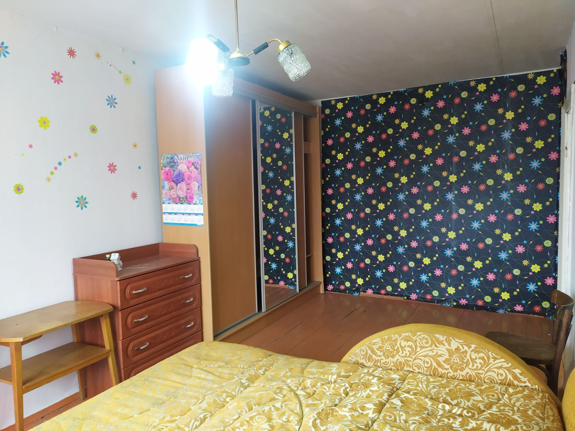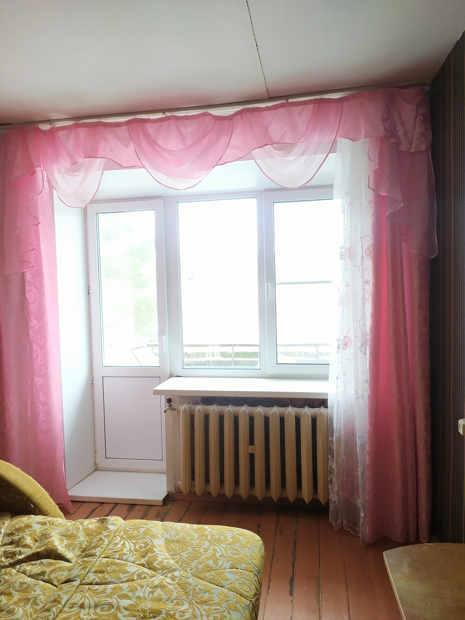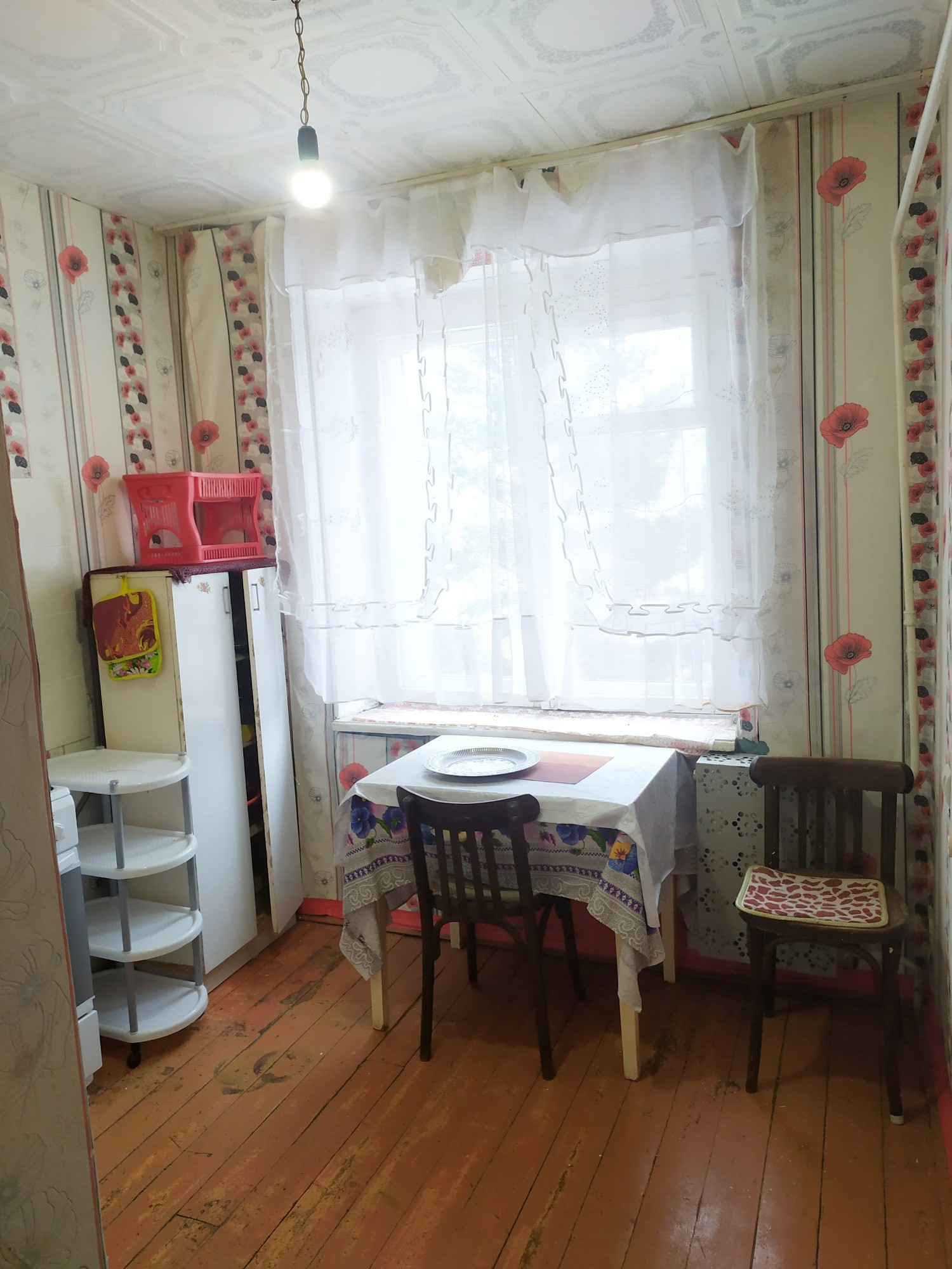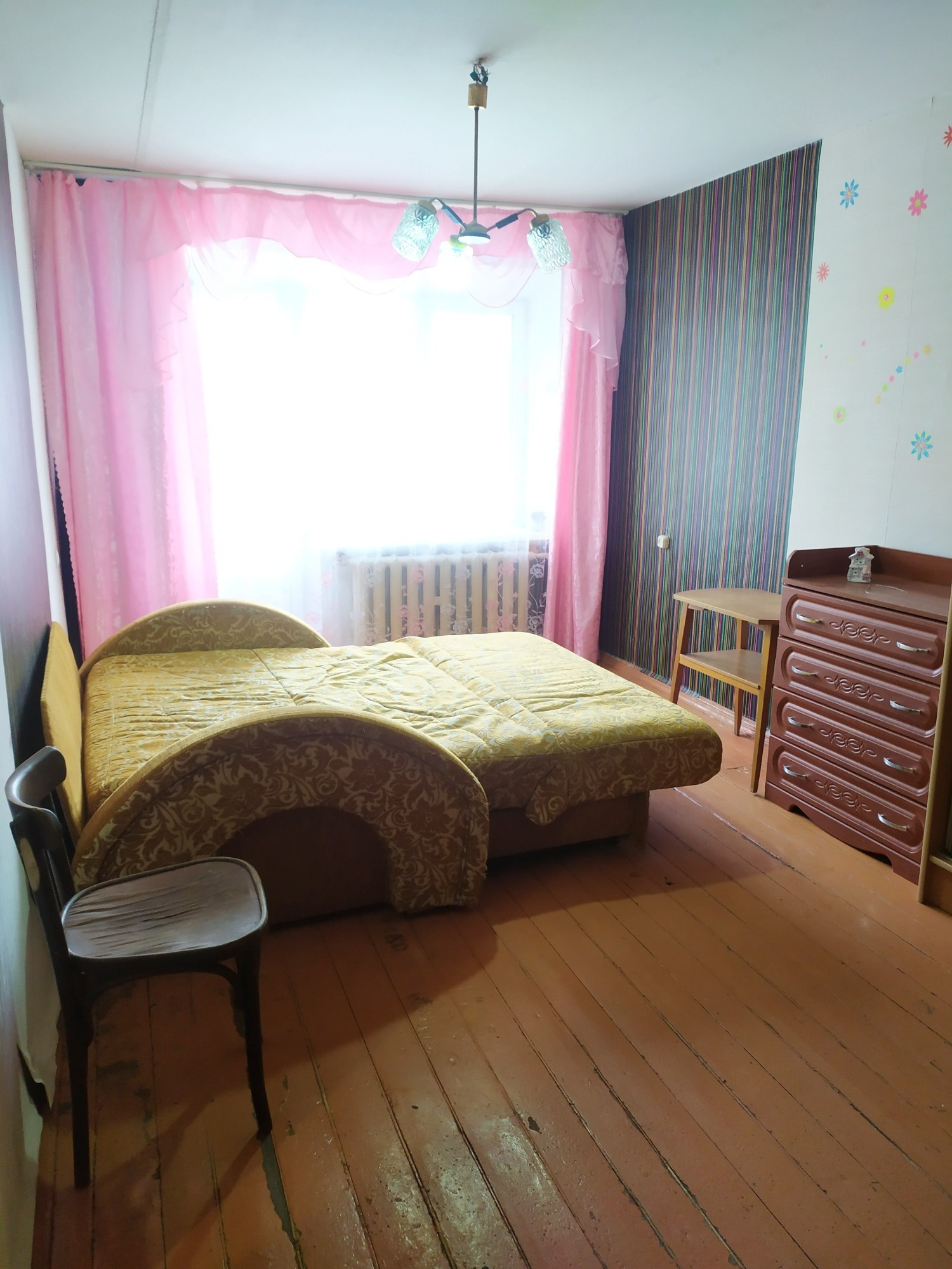Состояние среднее жилое, окно в комнате пластиковое, остаётся вся мебель.