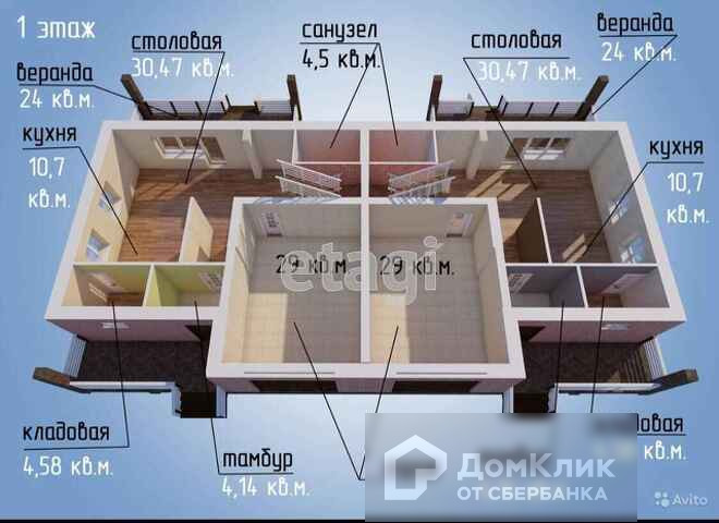 В продаже таунхаус в экологически чистой зоне. Общая площадь 250кв.м. Первый этаж: кухня- 11кв.м, зал: 30кв.м, санузел:4.5кв.м, кладовая:4.5кв.м.