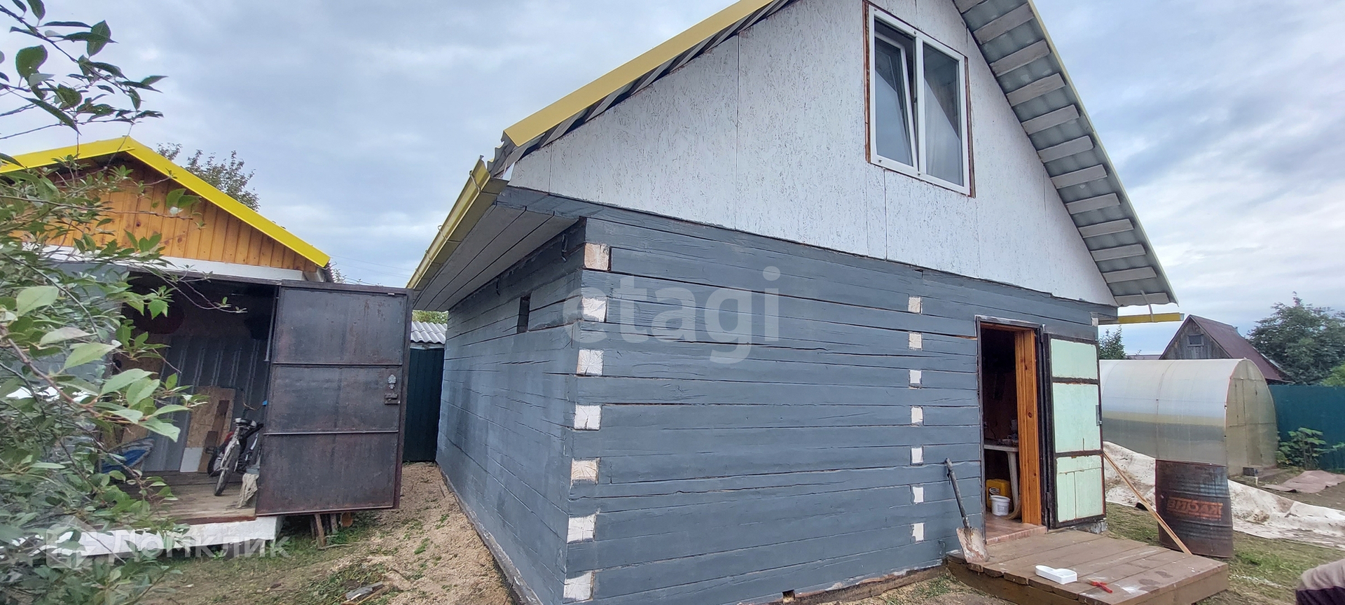 Продается дом - баня на Московском тракте в садовом обществе Надежда - 3. Городская черта, район п.Московский. На участке имеется дом -баня(6х6) с жилой комнатой на втором этаже. Вода из скважины заведена. Крыша новая. Дом на фундаменте. Дом вполне можно использовать для круглогодичного проживания, пока строится большой дом. Территория под новый дом отсыпана песком. Так же на участке имеется хоз постройка(сарай), теплица, туалет, колодец, скважина. Участок полностью пригоден под строительство дома. На участке имеется парковочное место(сделано тратуарной плиткой) под две машины. Ворота откатные, забор из профнастила по всему периметру. Имеются ягодные насаждения. Ходит общественный транспорт круглый год и школьный автобус, магазины на въезде и по пути в общество