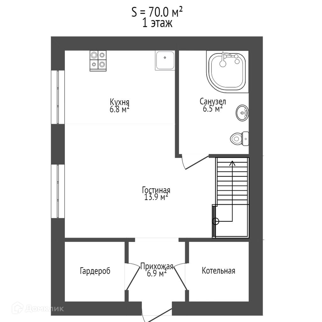 Общая площадь 70 м2