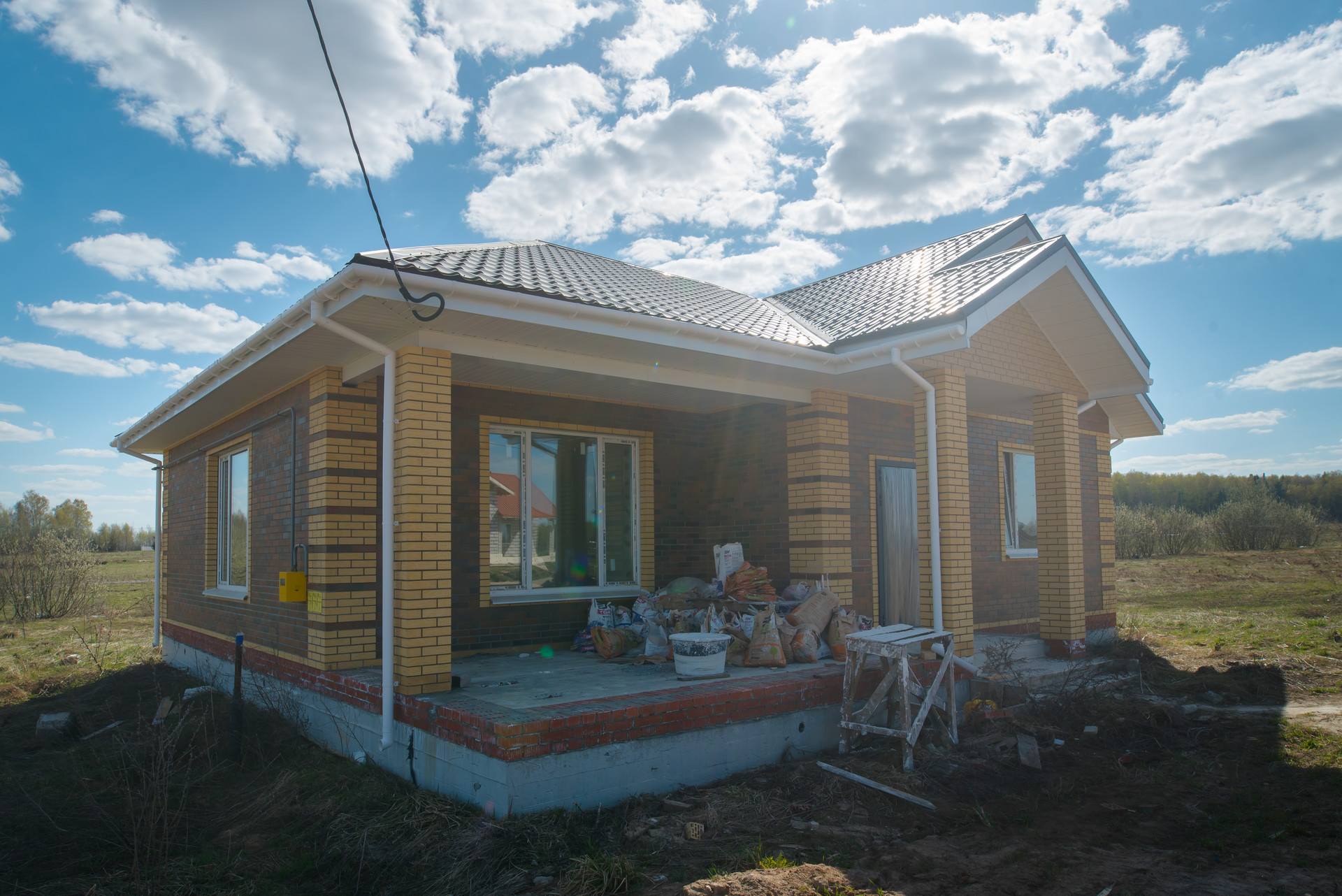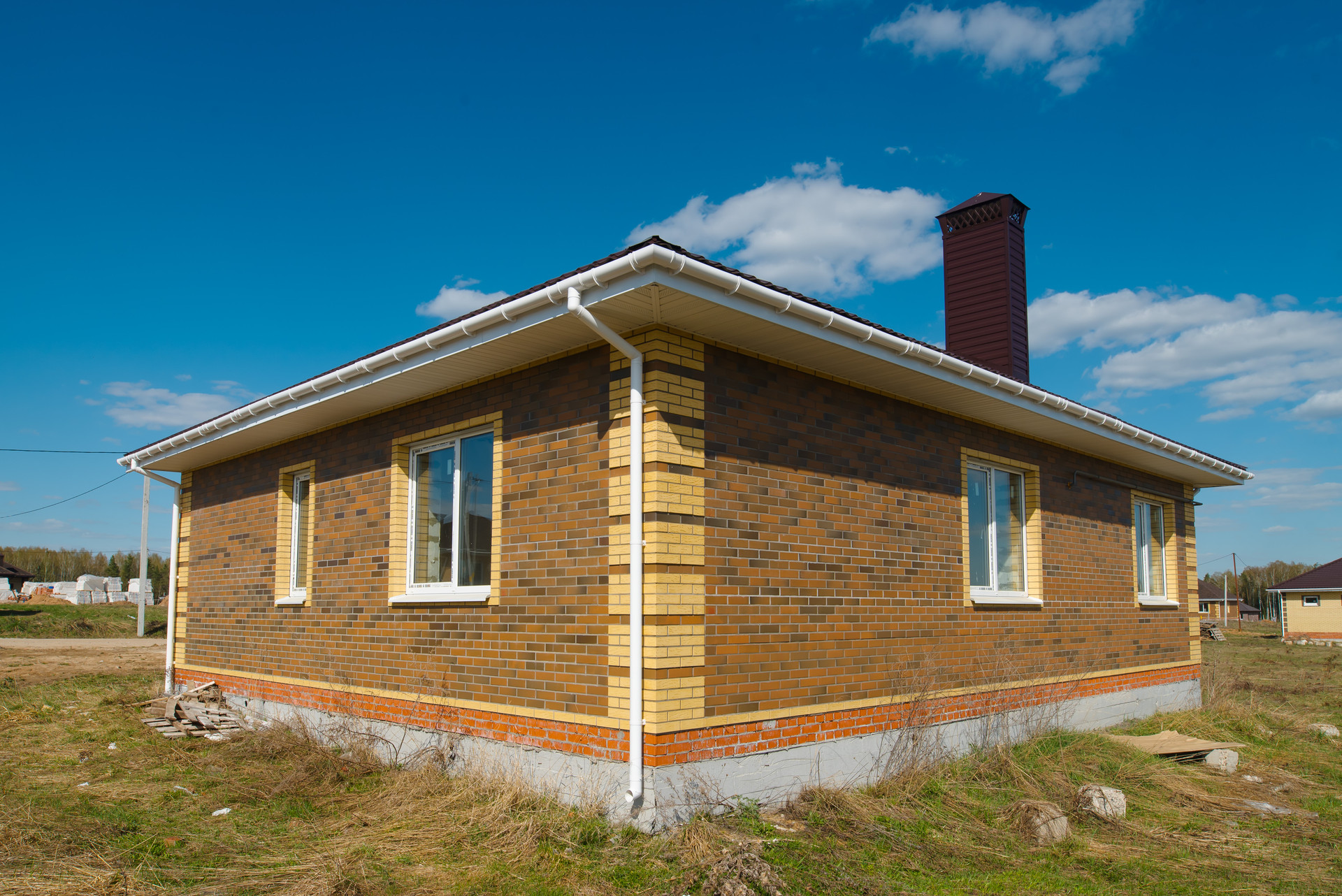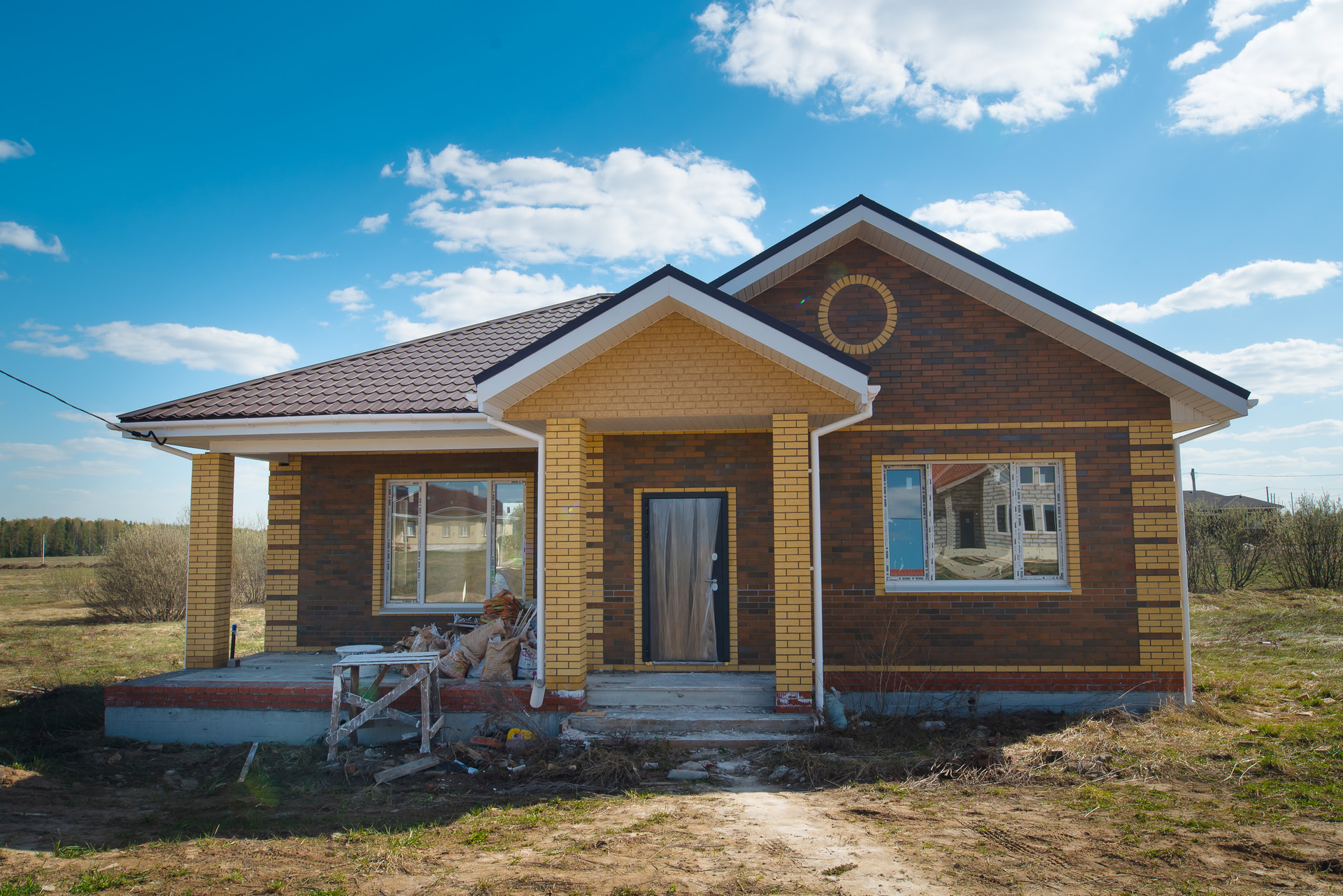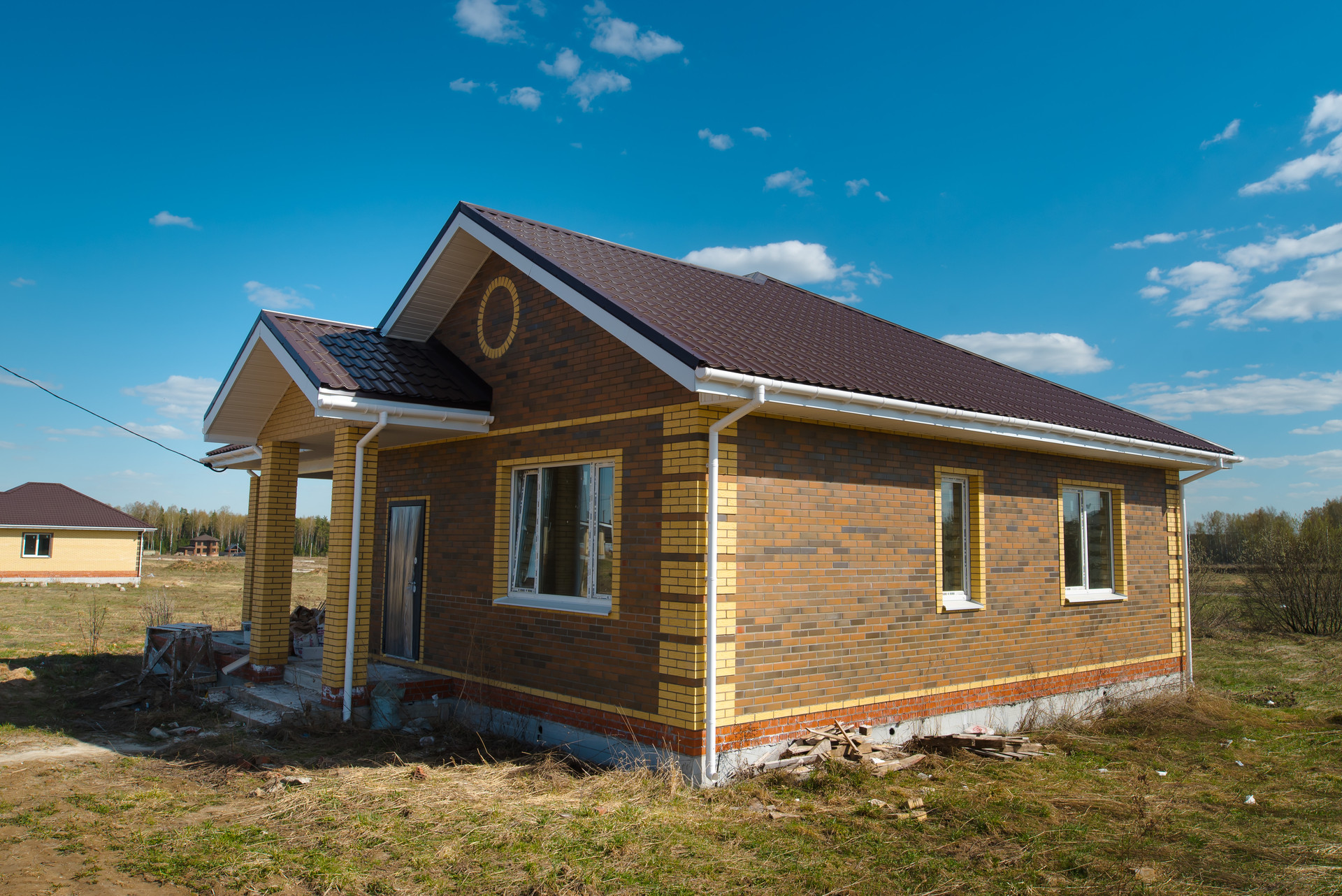 Дом построен из газоблоков с облицовочным керамическим кирпичом на фасаде и мягкой кровлей. Фундамент свайно-ростверковый, что гарантирует надежность и долговечность конструкции.