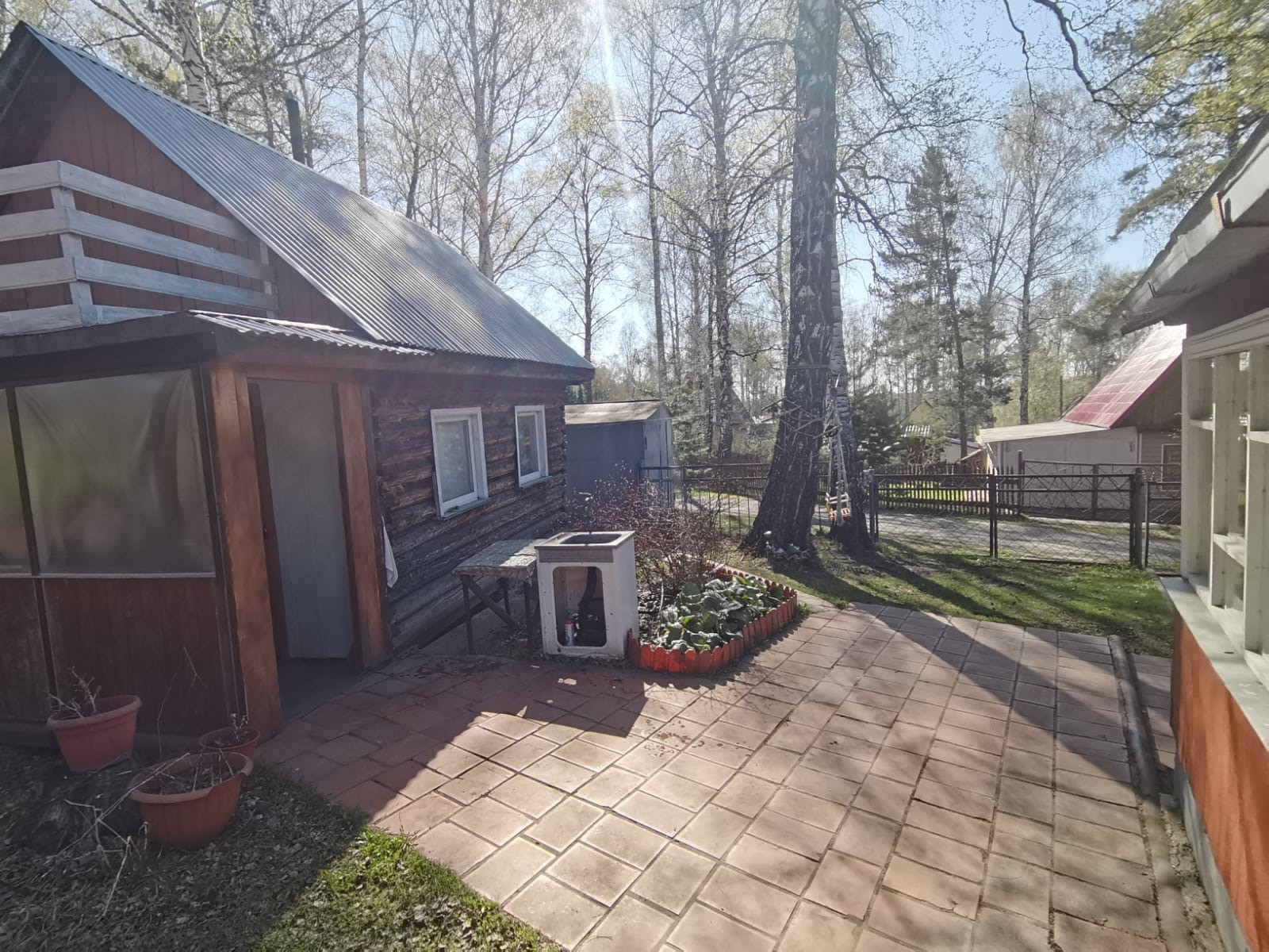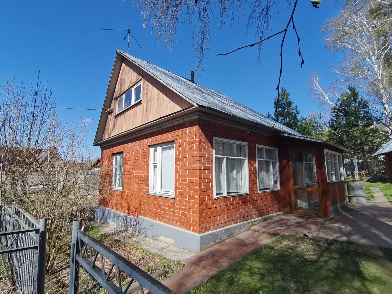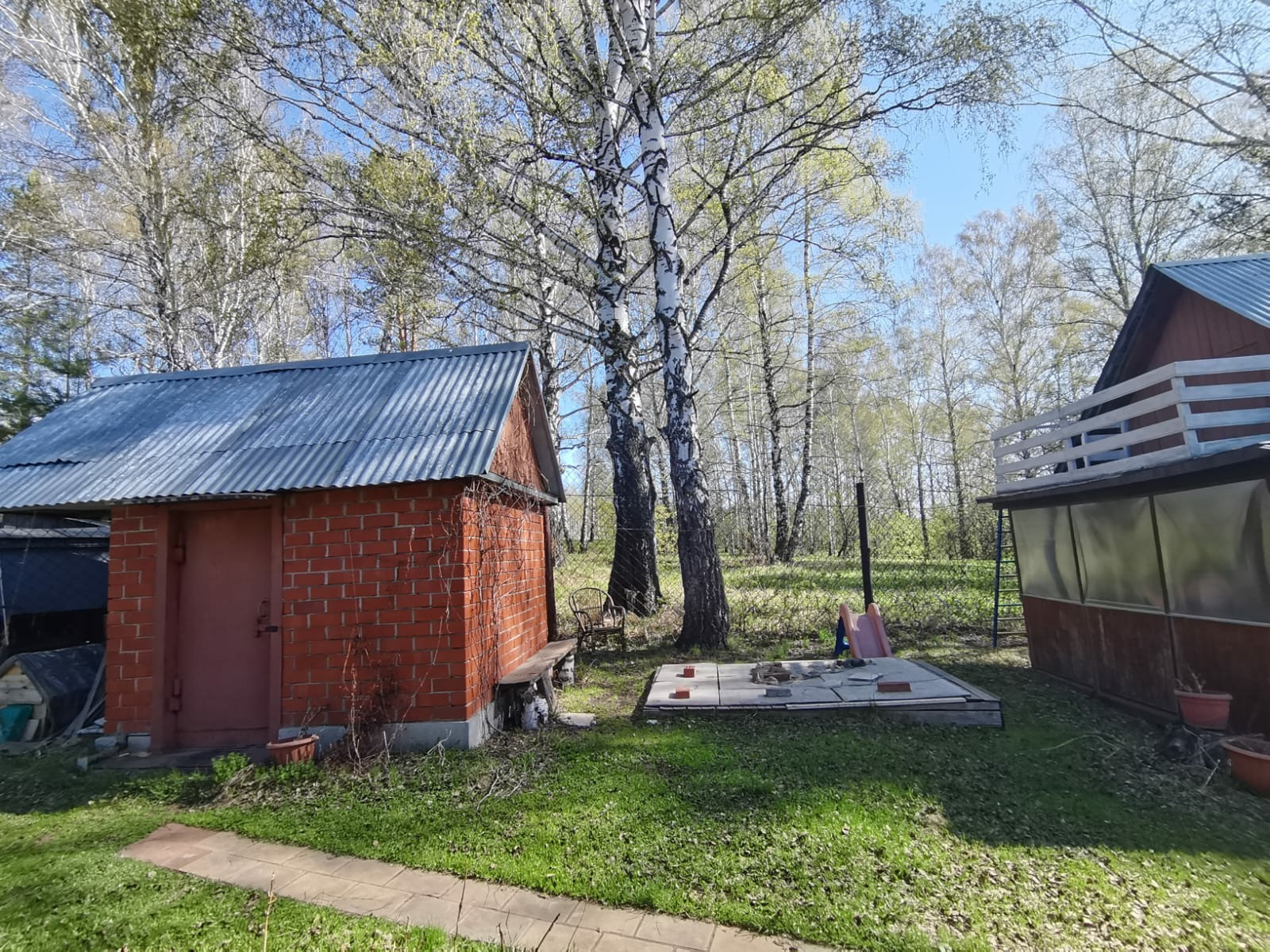 Участок крайний к лесу,10 соток. Огорожен высоким забором. На участке дом 2 этажа, из  бруса, обложенный кирпичом. свежей вагонкой. и проложено электричество. Внутри обшит свежей вагонкой. Проложено новое электричество. Мебель новая. В доме  есть печь,душевая кабина,бойлер,посудомойка,стиральная машина,кухонная плита,холодильники и морозилка.На участке две теплицы,баня из бруса,домик для хранения инструментов,металлический гараж.Тишина и свежий воздух.