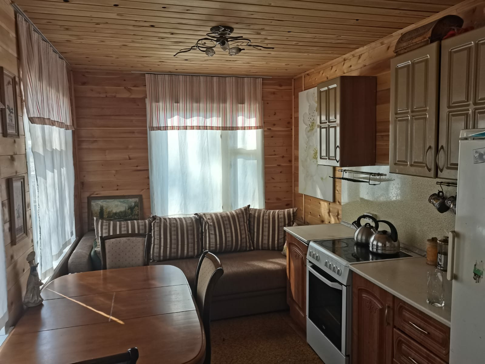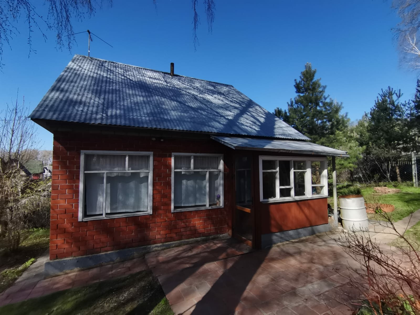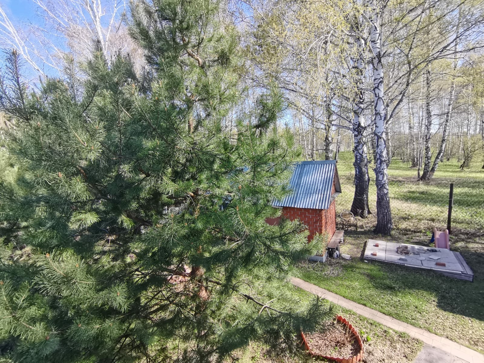 Участок крайний к лесу,10 соток. Огорожен высоким забором. На участке дом 2 этажа, из  бруса, обложенный кирпичом. свежей вагонкой. и проложено электричество. Внутри обшит свежей вагонкой. Проложено новое электричество. Мебель новая. В доме  есть печь,душевая кабина,бойлер,посудомойка,стиральная машина,кухонная плита,холодильники и морозилка.На участке две теплицы,баня из бруса,домик для хранения инструментов,металлический гараж.Тишина и свежий воздух.