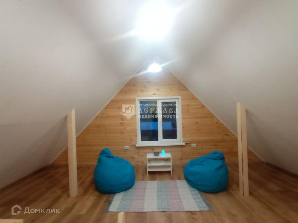 На первом этаже дома две комнаты - кухня + прихожая, зал. Второй - просторный мансардный этаж.