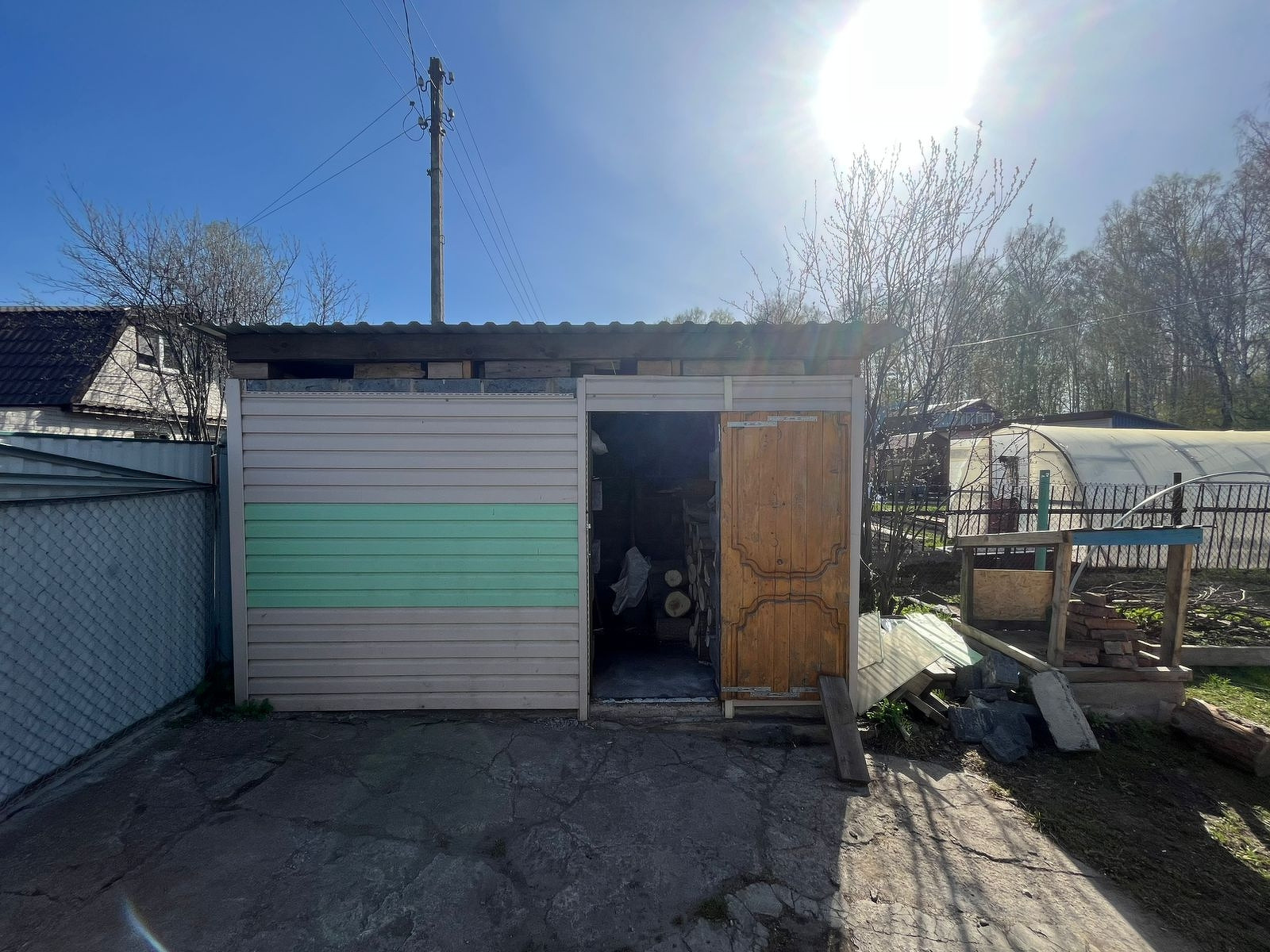 -Участок ровный с выходом на 2 аллеи. Асфальтированная дорога. Аллея не проездная. На участке дом, баня, 2 теплицы на фундаменте, погреб, углярка, сарай, беседка новая.