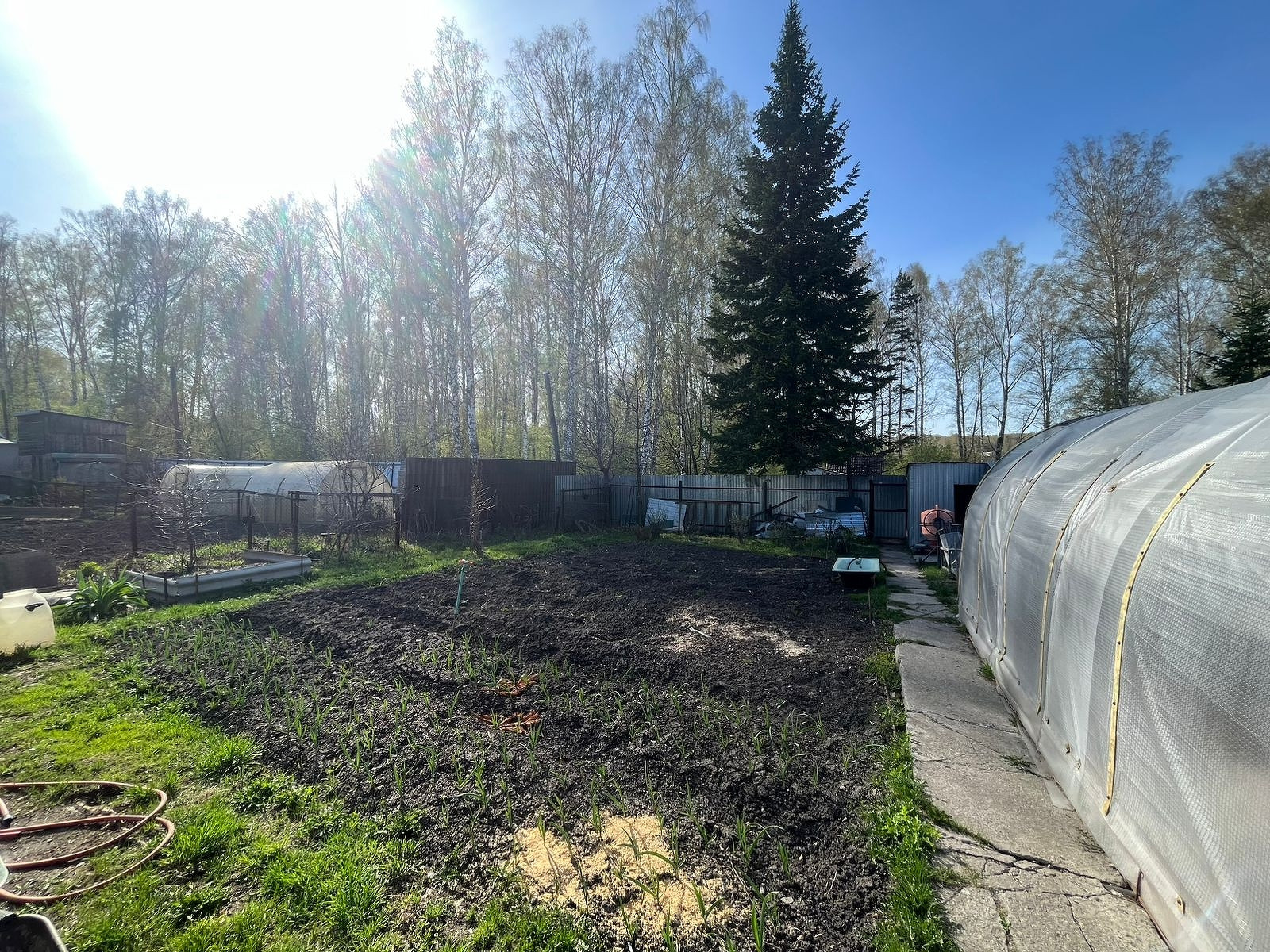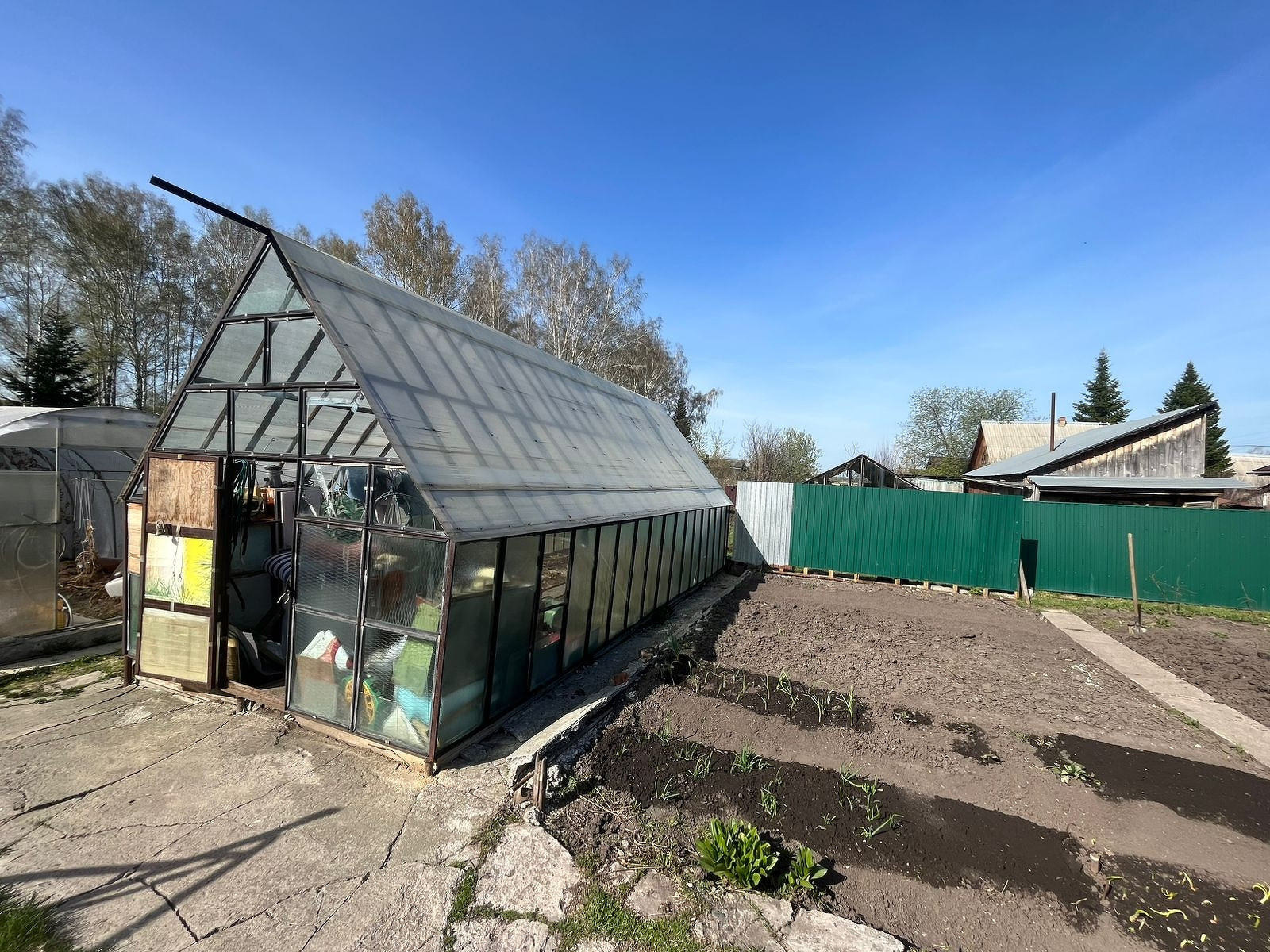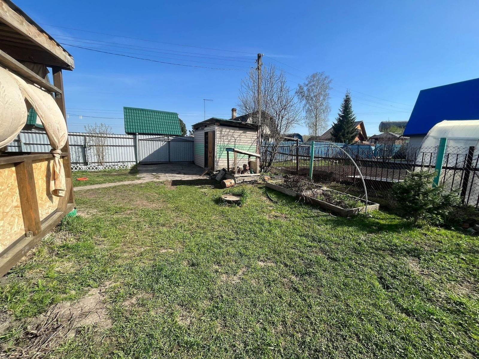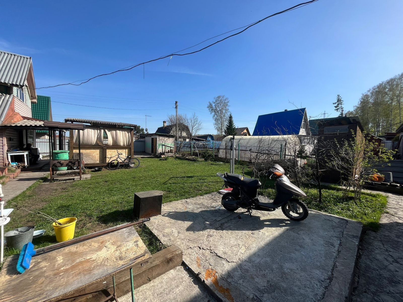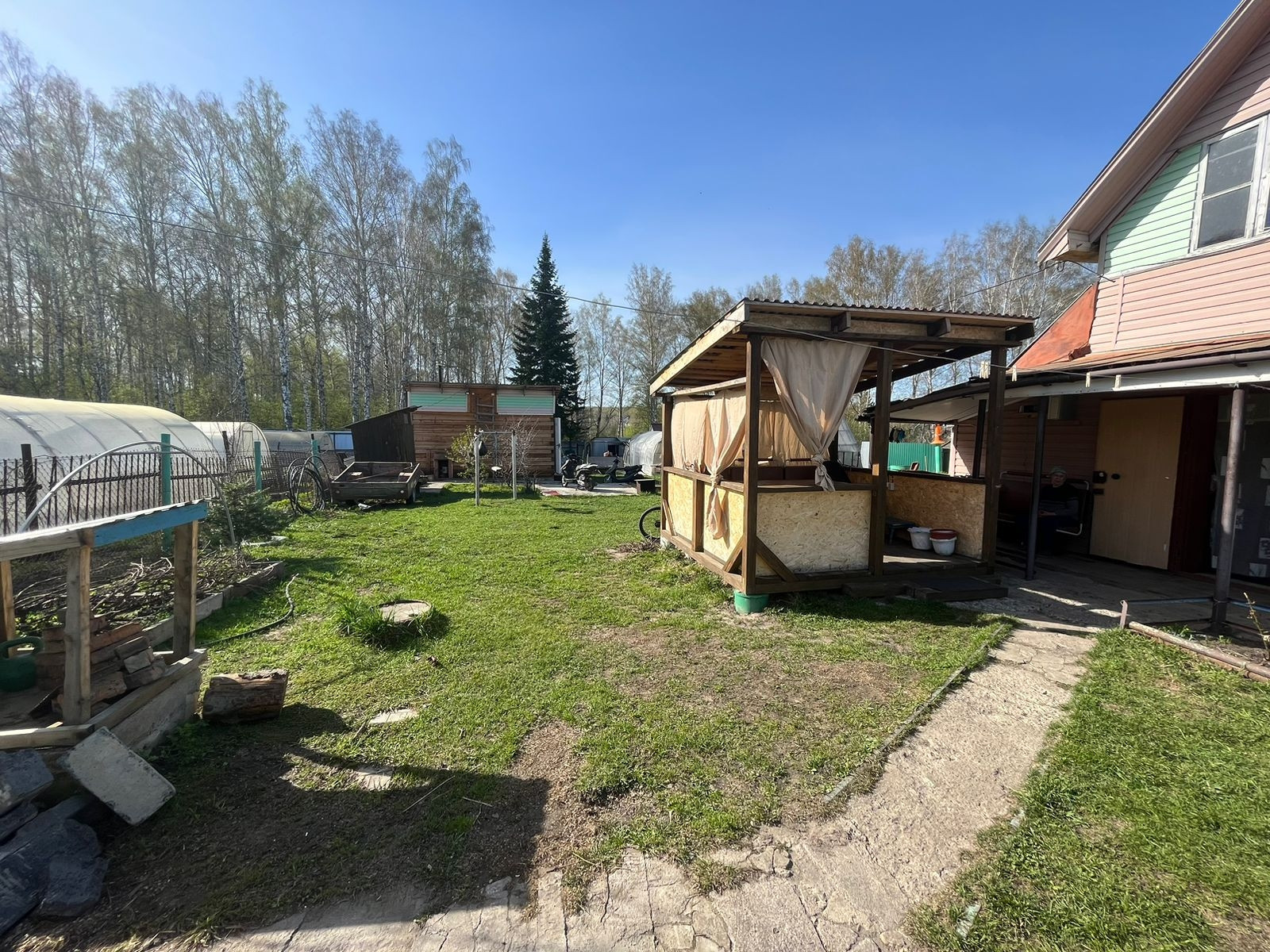 -Имеются все необходимые посадки: малина, вишня,виноград, многолетние цветы и молодые деревья.