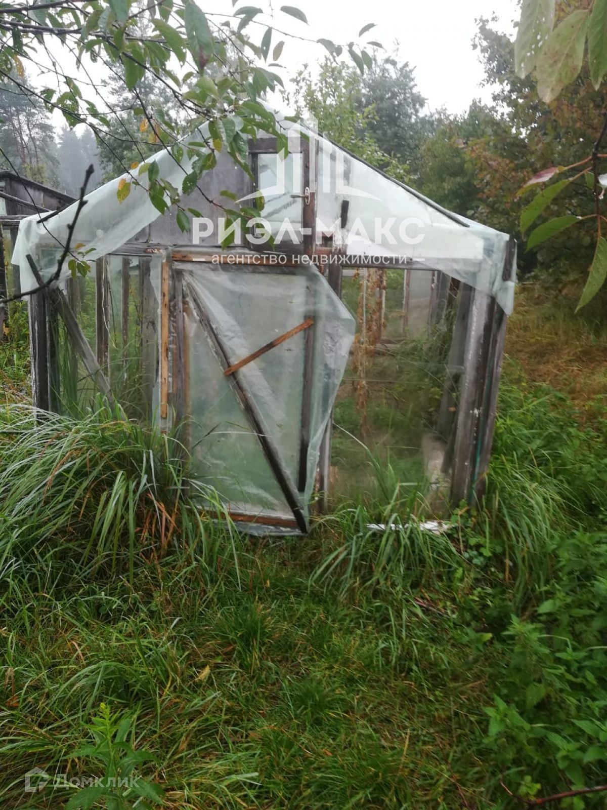На территории ровного, просторного участка установлены три теплицы: поликарбонат и частично стекло, растут плодовые деревья: сливы,вишни,четыре сорта яблонь,груши.