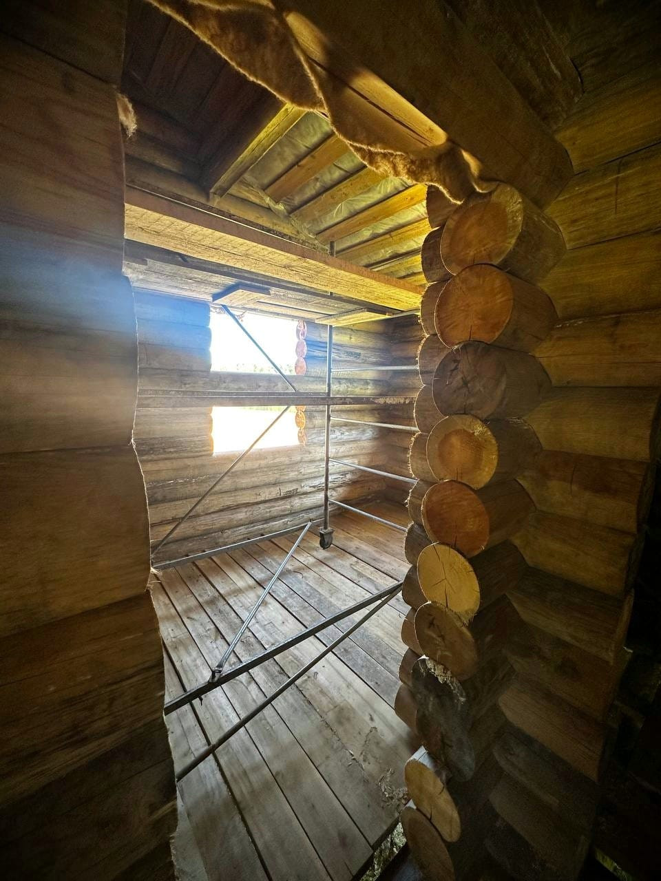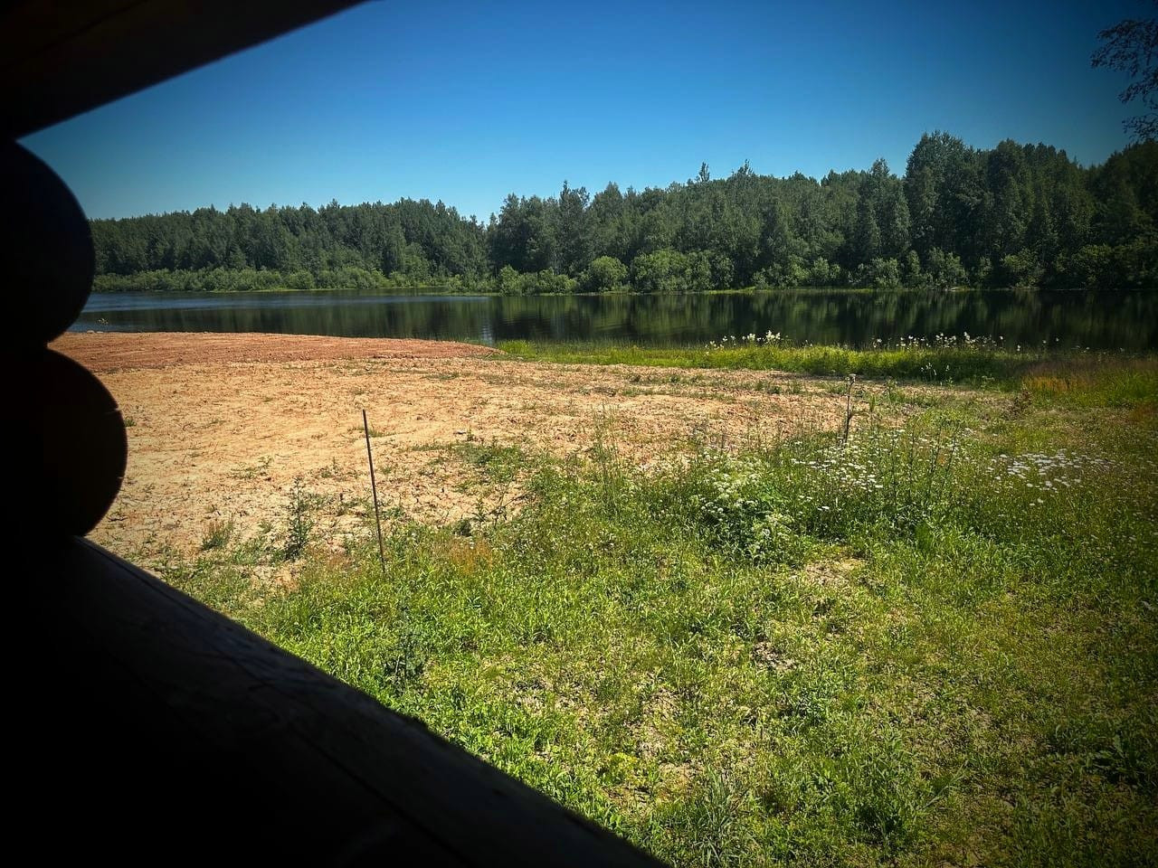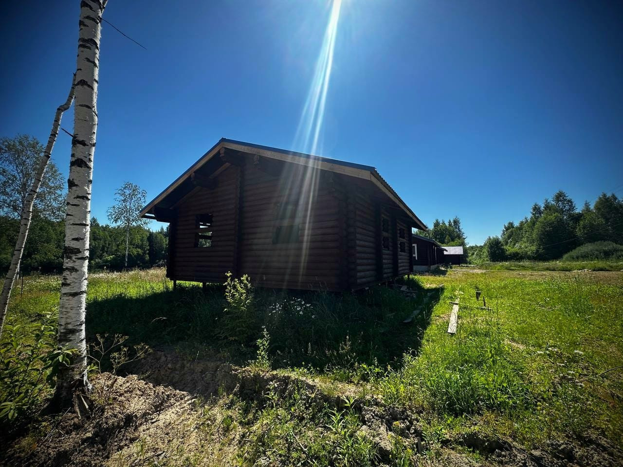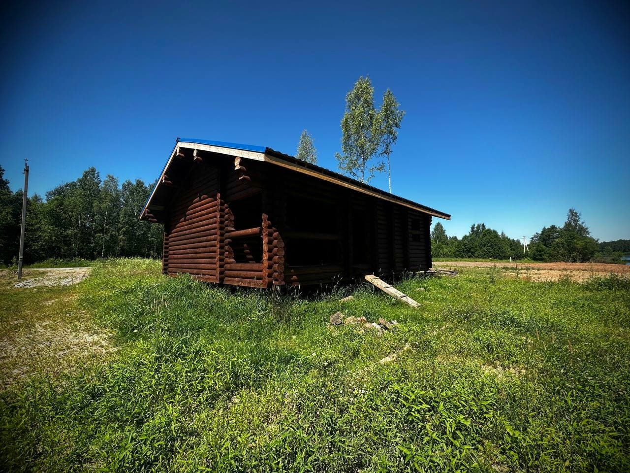 - Дом из калиброванного бревна диаметром 22 см с фундаментом на сваях и крышей из металлочерепицы, требуется внутренняя отделка