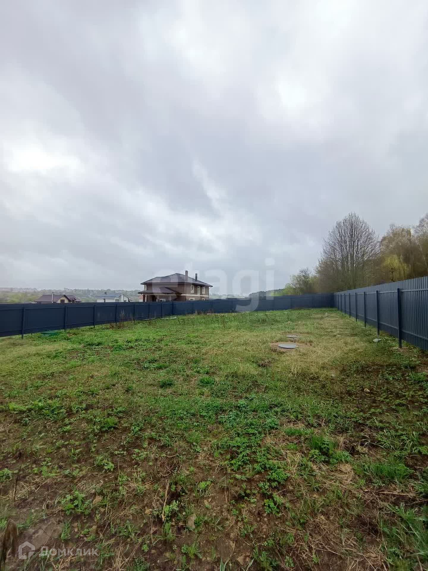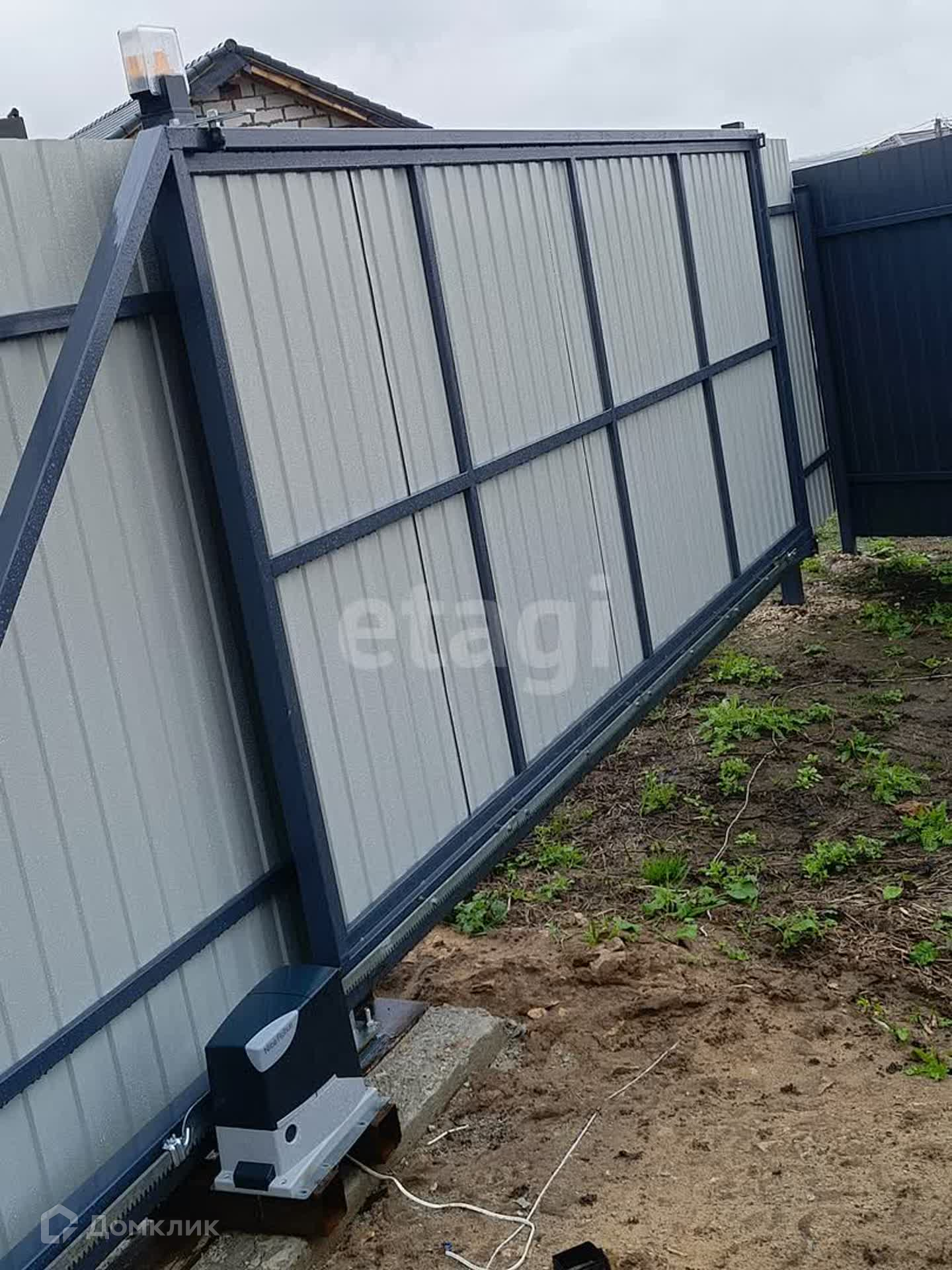 Участок, на котором расположен дом, имеет правильную прямоугольную форму и огорожен профлистом, обеспечивая приватность и безопасность. Установлены автоматические ворота.