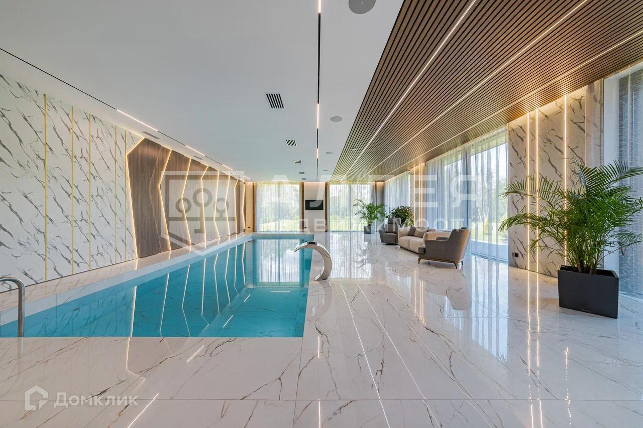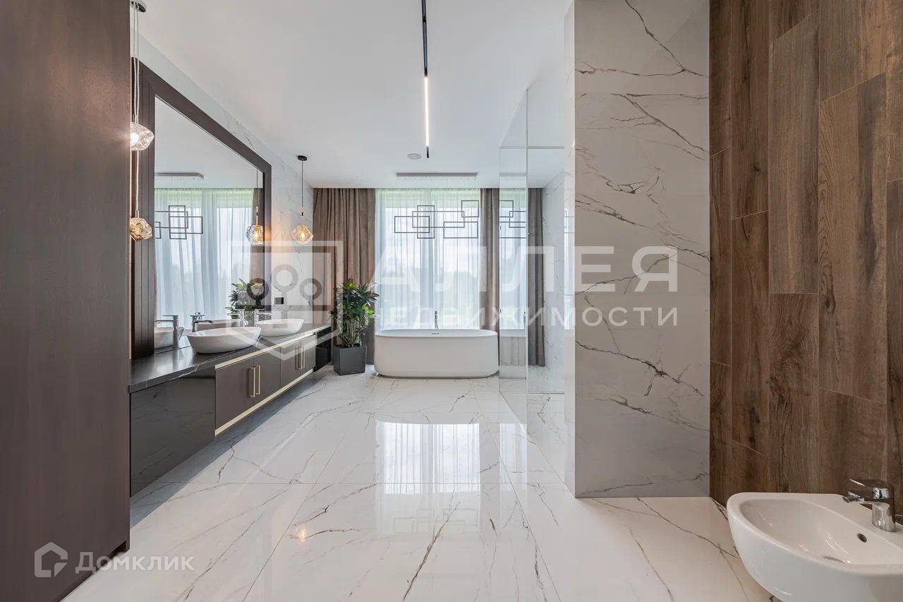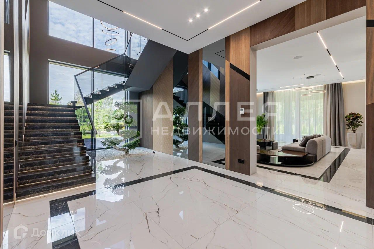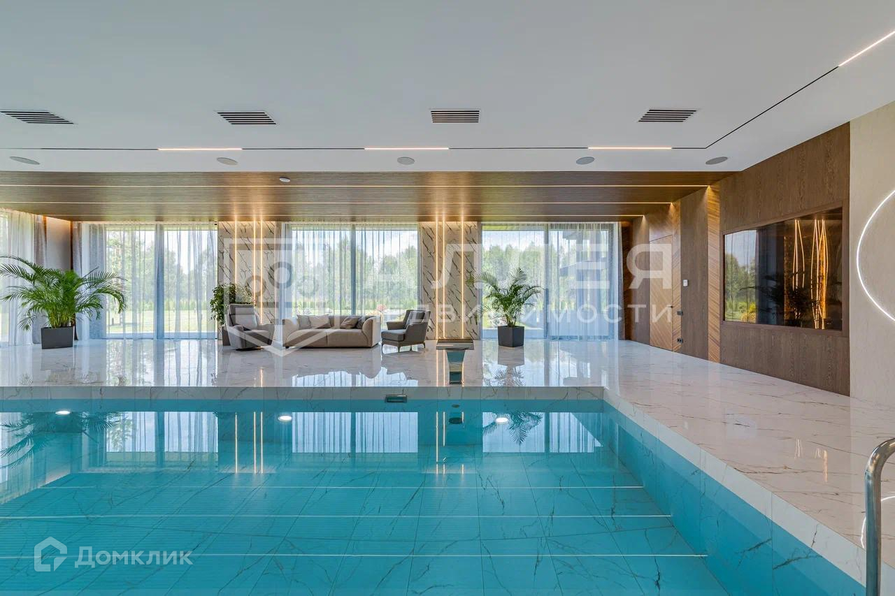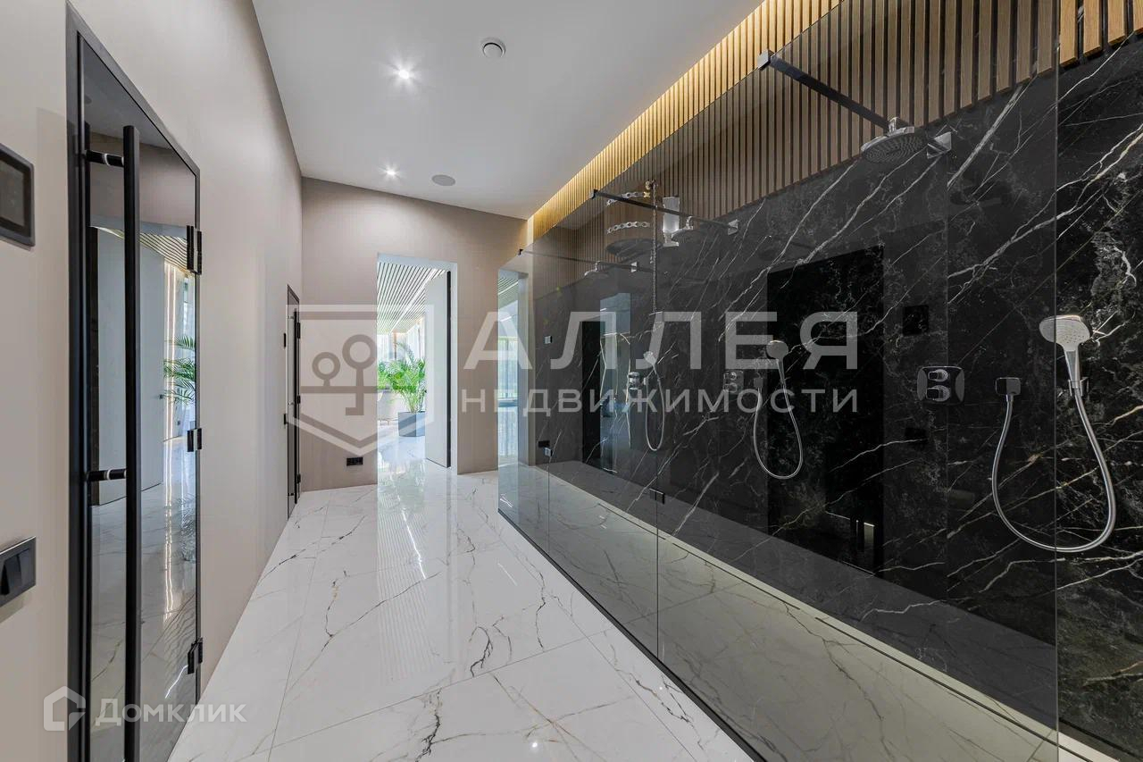 Дом: Уникальная современная резиденция площадью 1111 м2. В доме высокие потолки и панорамное остекление. Установлена система Умный дом с видеонаблюдением и удалённым управлением. Просторная зона для СПА отдыха в 200 м2 с хамамом, сауной и бассейном. В доме два камина: паровой и дровяной на террасе с функцией барбекю. В контур дома входит гараж с квартирой для персонала.