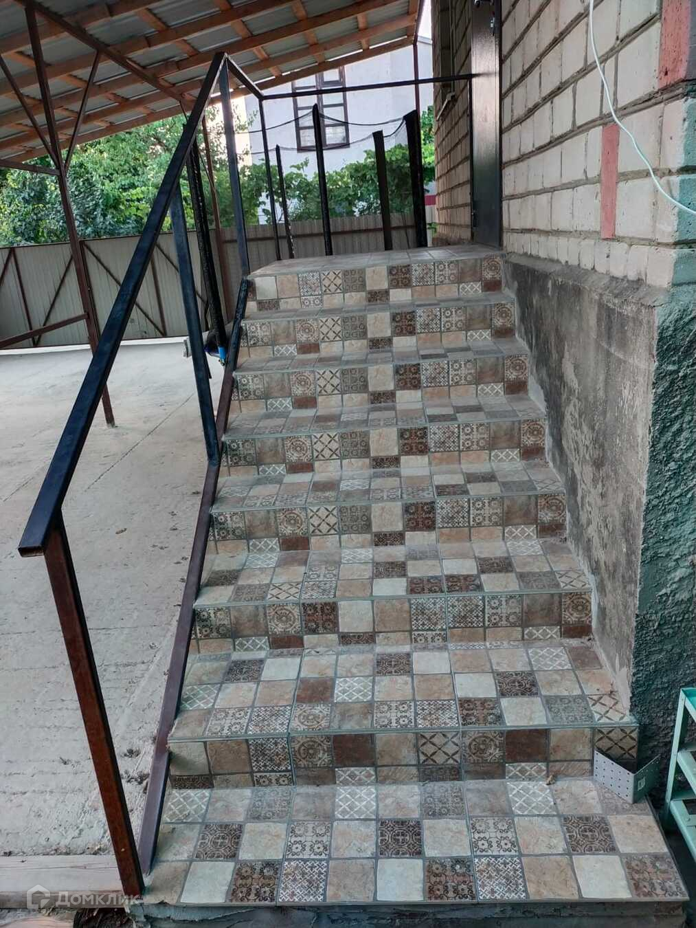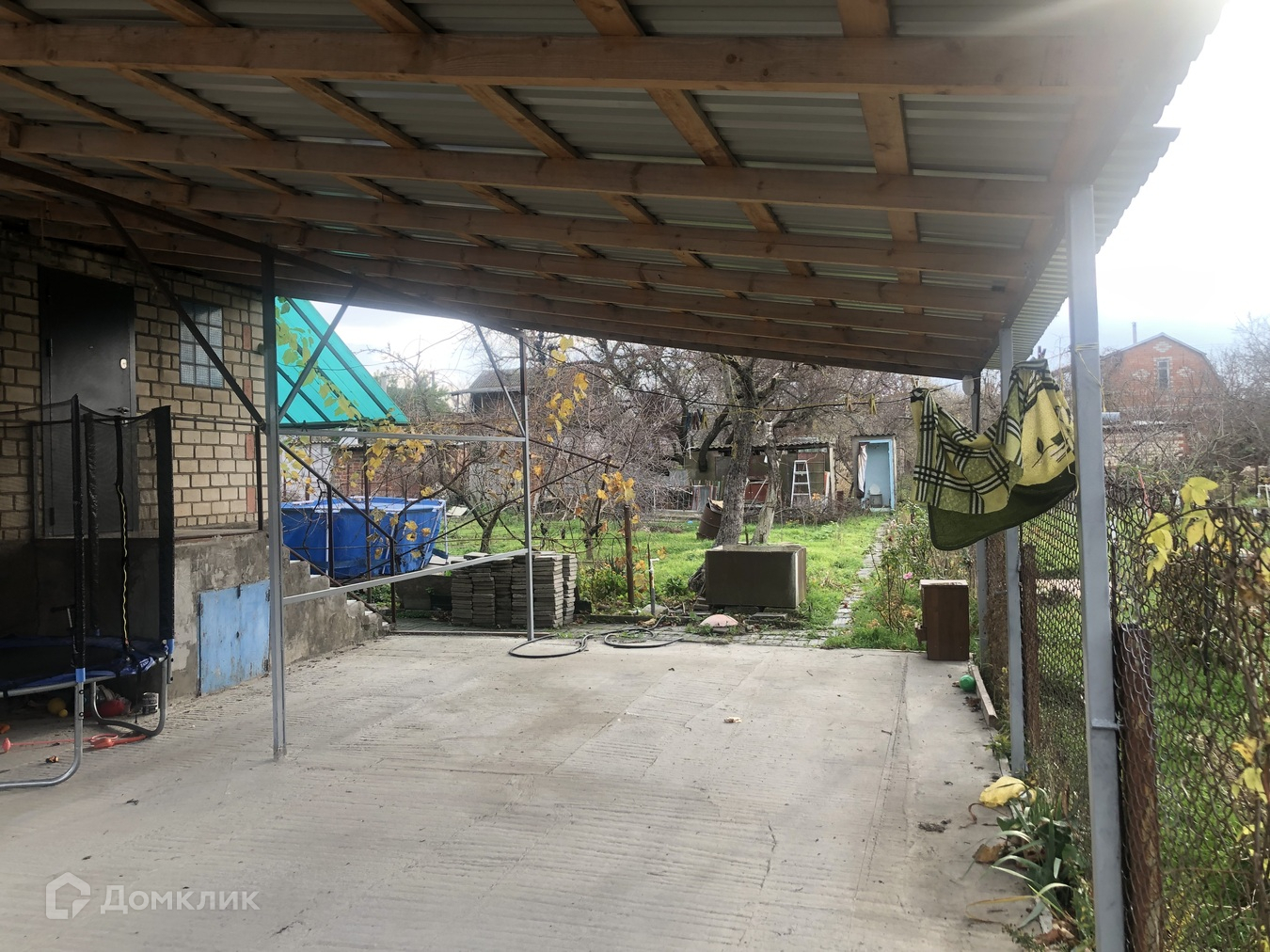 Придомовая территория имеет навес и большую забетонированную  площадку, есть парковка на два автомобиля.