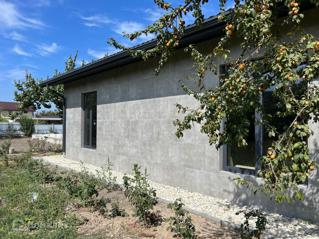 Расположен на участке 8 соток с плодоносящим садом .