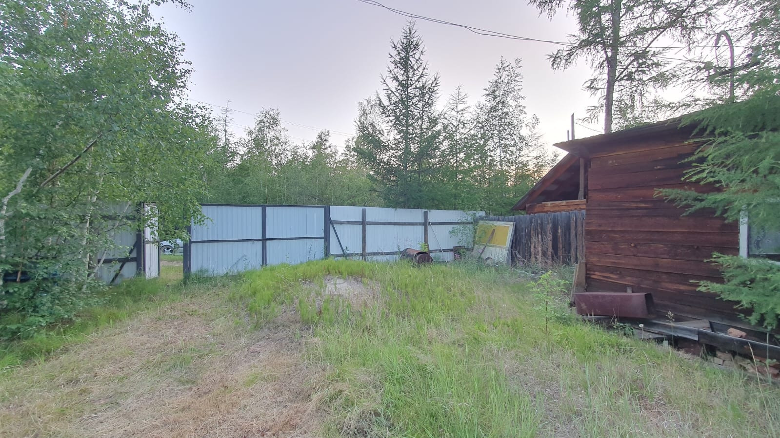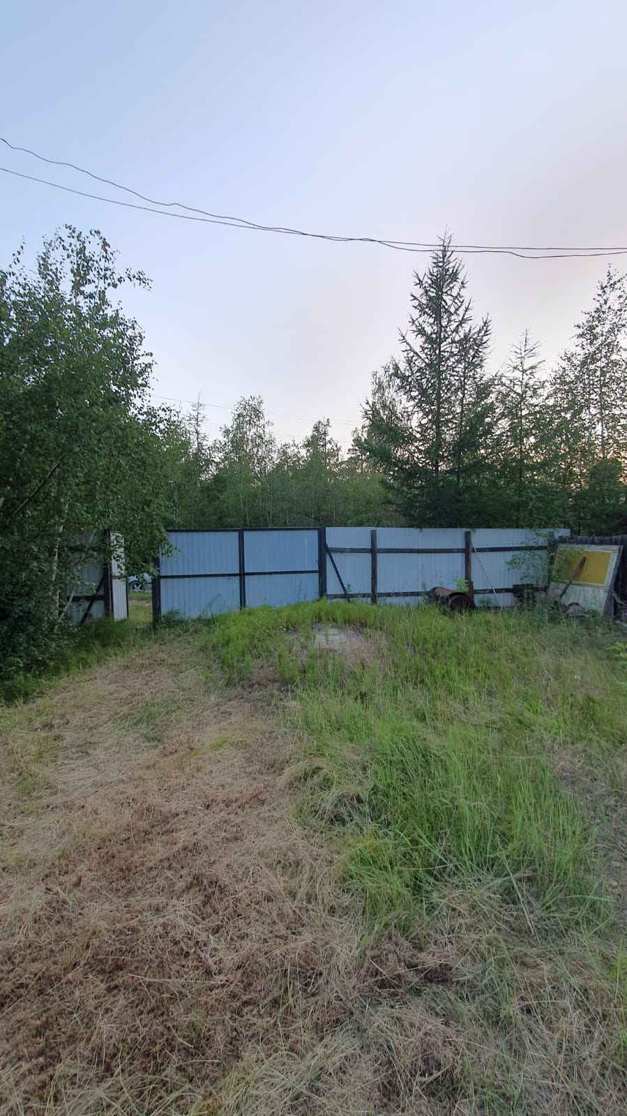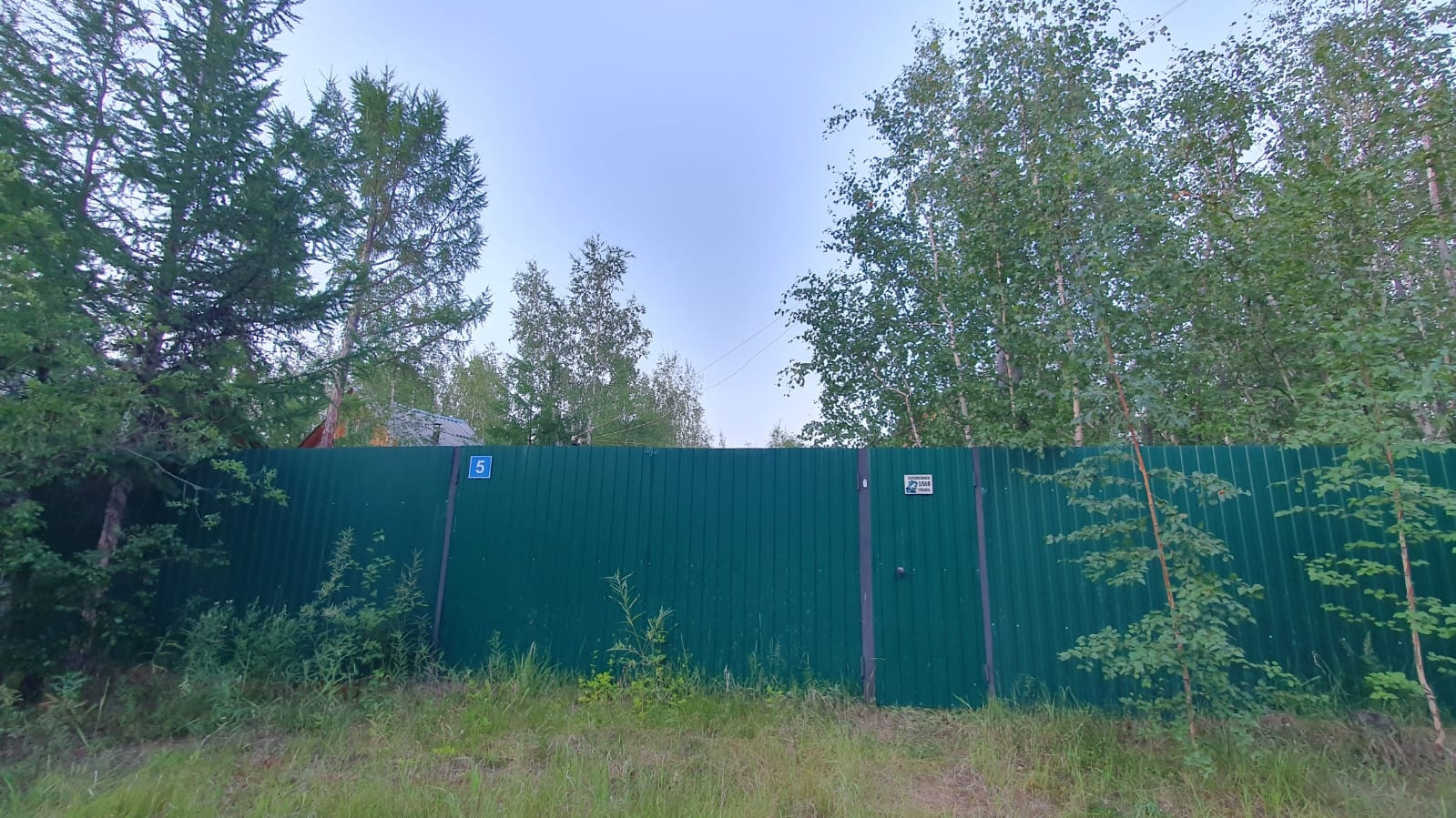 !!Красивый участок с деревьями, огорожен забором, металлические ворота.