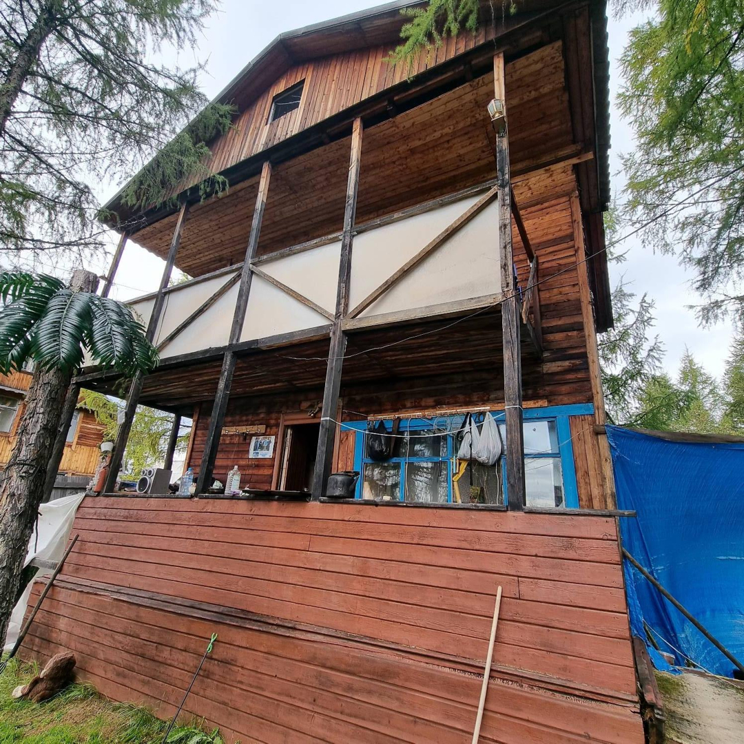 На участке расположен вместительный двухэтажный брусовой дом с верандами, организована открытая кухня.