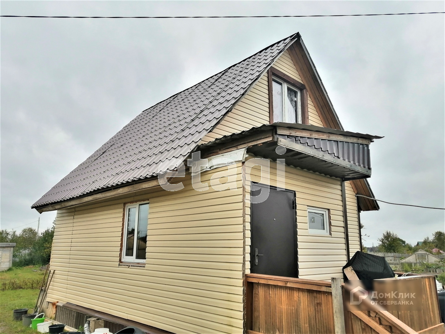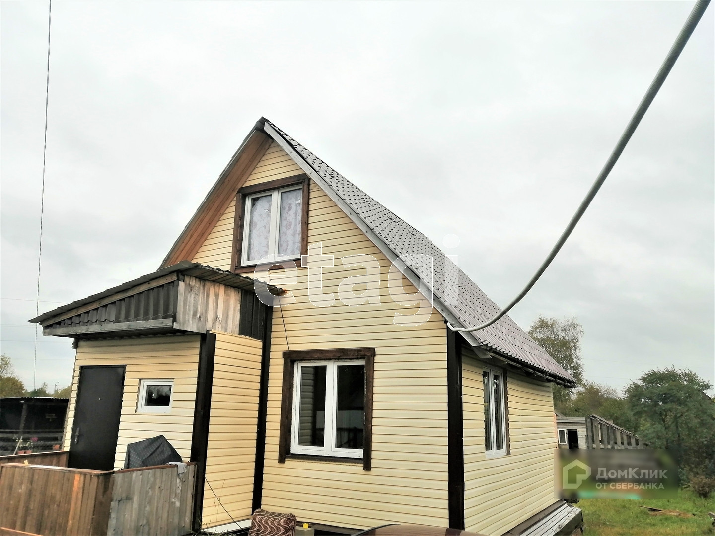 Небольшой каркасный дом пригодный для проживания с участком на котором можно заниматься огородничеством, просто дышать свежим воздухом или устроить барбекю-посиделки с друзьями.