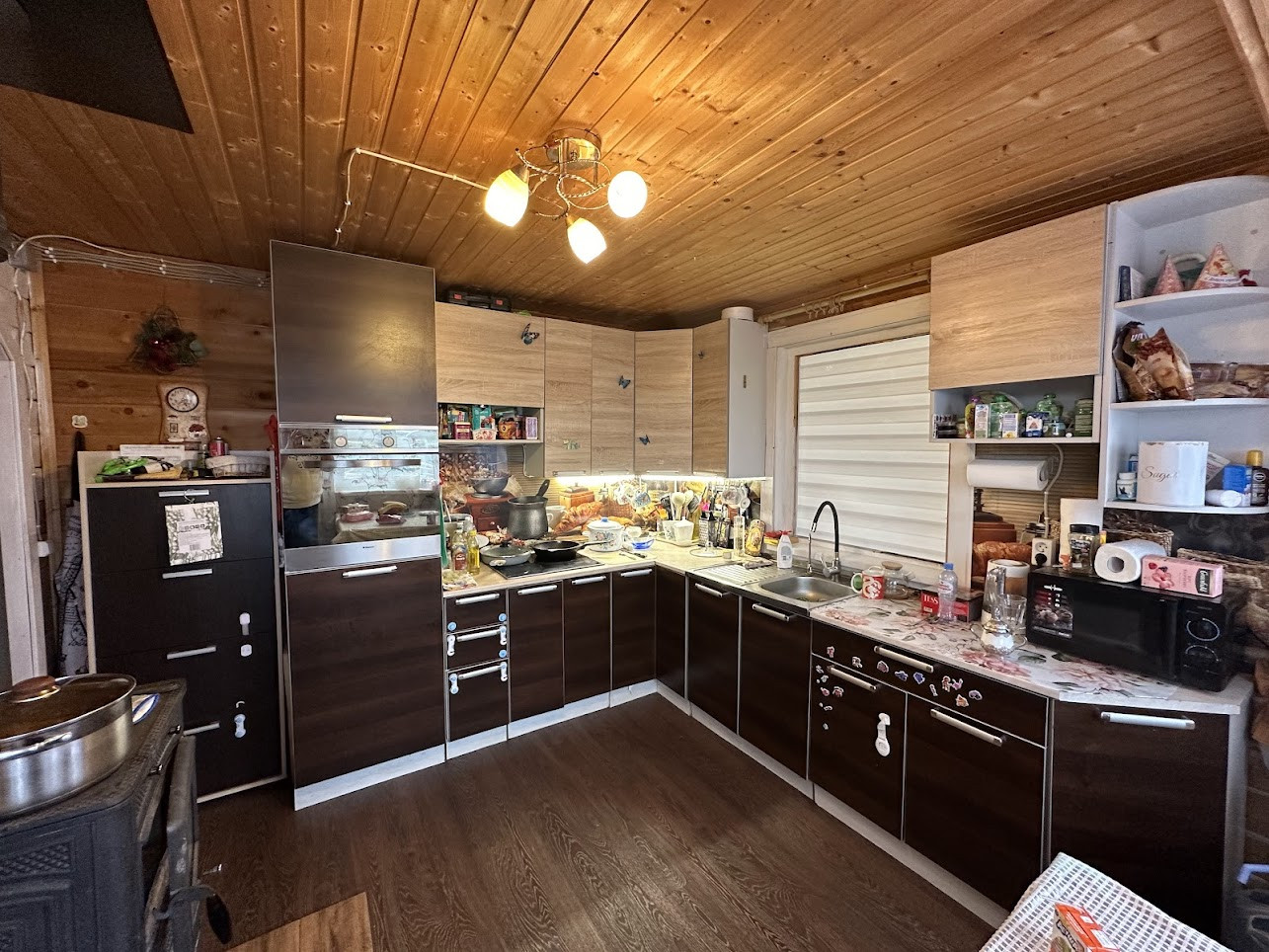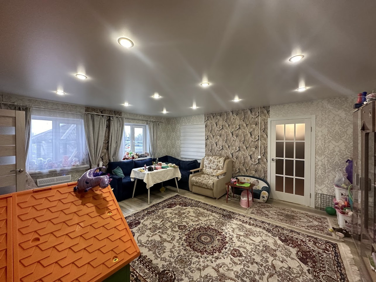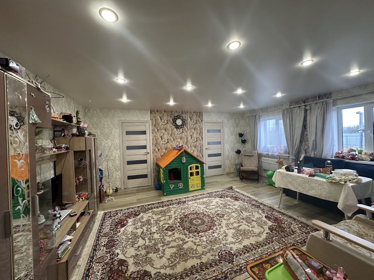 Продуманная функциональная планировка: на первом этаже прихожая, широкий коридор с системой хранения, гостиная, кухня, большой совмещённый с/узел, гостевая комната и две спальни; на втором этаже большая изолированная спальня, холл с балконом, рабочий кабинет с зоной отдыха и выходом на огромную террасу. В доме два входа на чердак. Состояние - "заезжай и живи, а если что-то не нравится - переделывай под себя", дом используется для постоянного проживания (все подробности и планировка на фото).