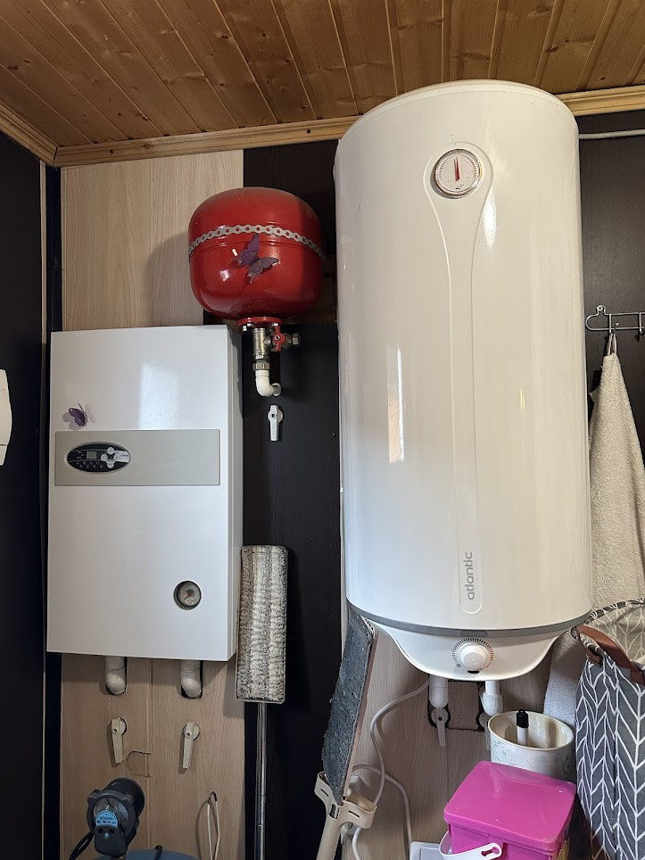 сам коттедж оснащён всеми коммуникациями: эл-во: 15 кВт, 380 V; отопление - комбинированное: электрокотел, конвекторы и современная дровяная печь с варочной поверхностью; холодное водоснабжение - скважина, снабжена глубинным насосом и накопительным баком внутри дома, для горячего водоснабжения - бойлер; септик - станция биоочистки.