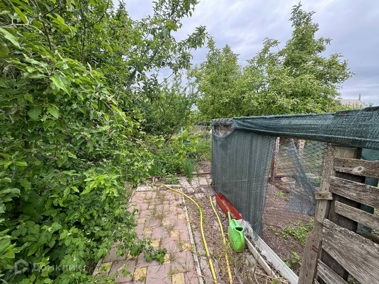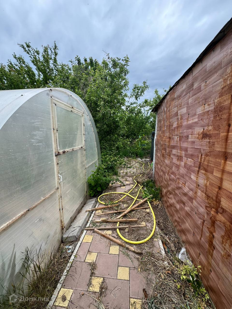 На участке есть вода, электричество, посажены плодоносящие деревья, две теплицы кустарники.