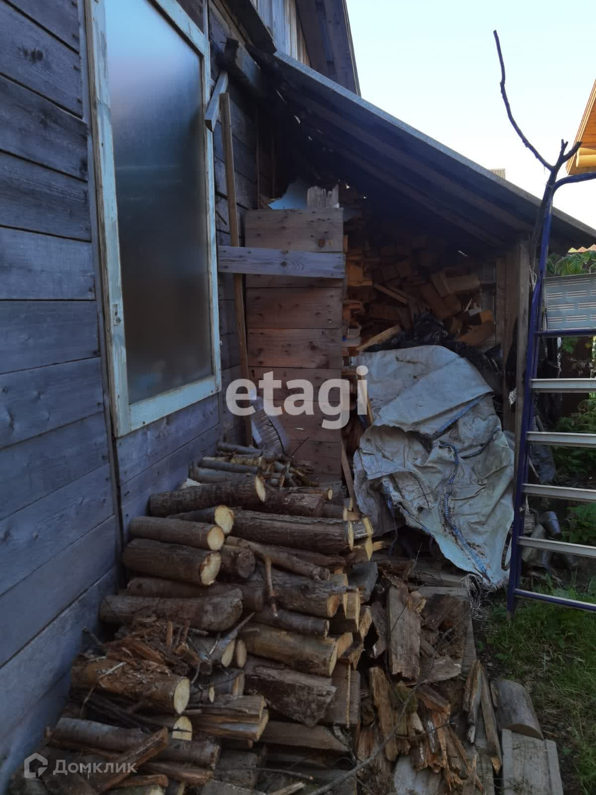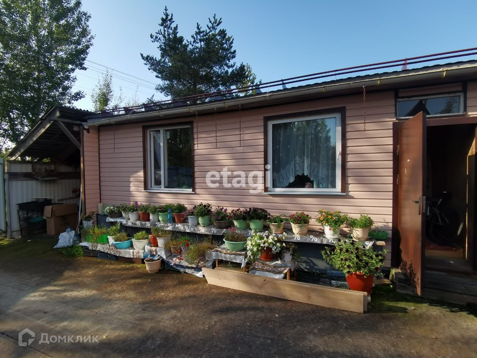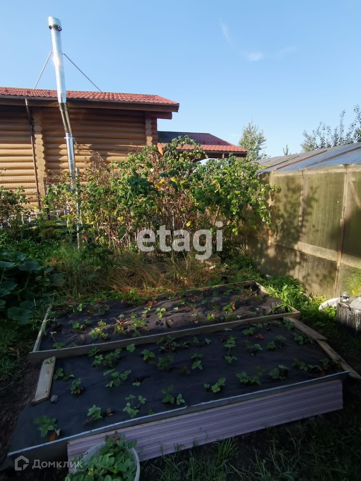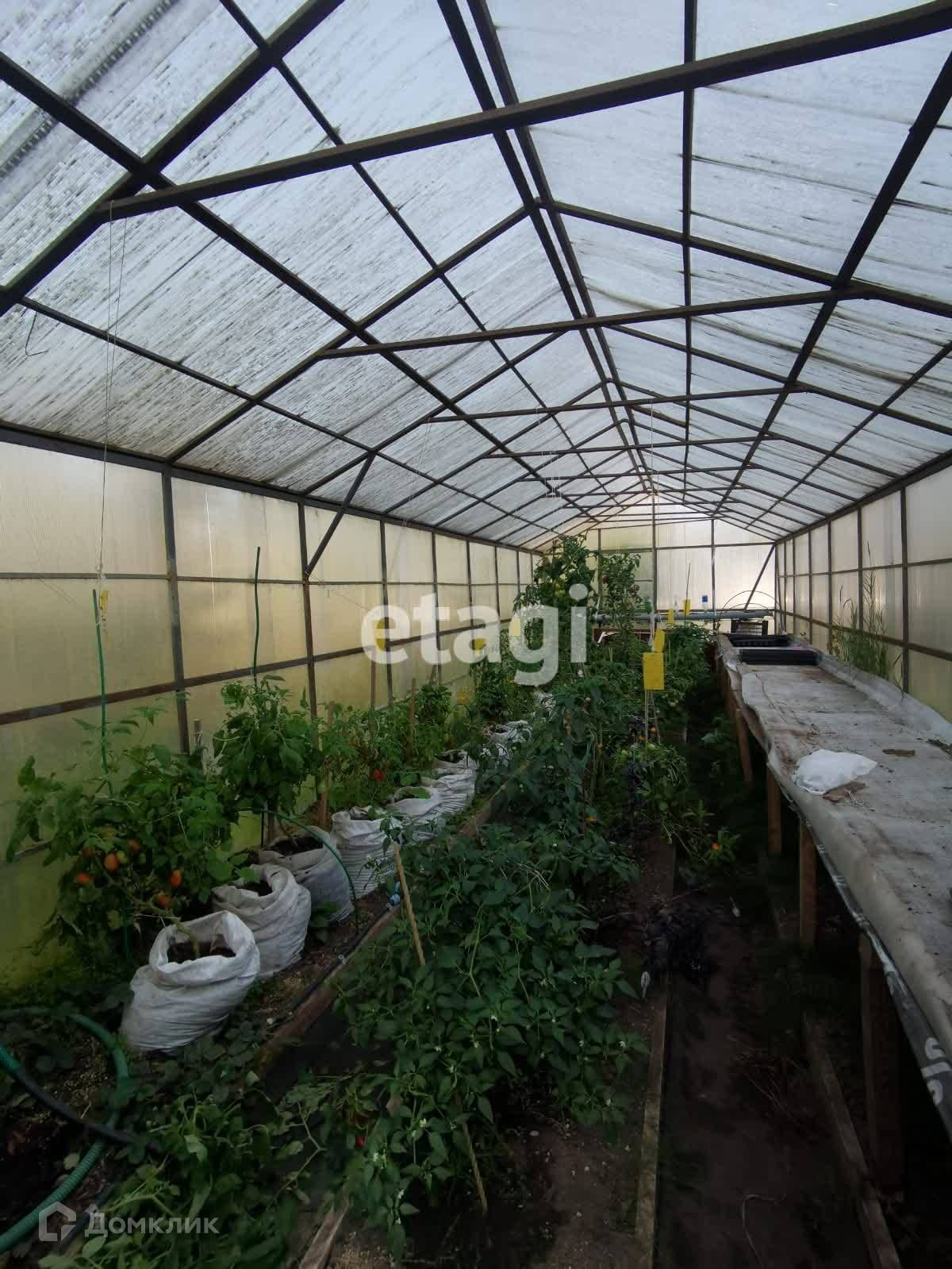 На участке также есть плодовые кустарники и деревья. Большой сарай, где сейчас живут курицы. Теплицы и баня с верандой для отдыха.
