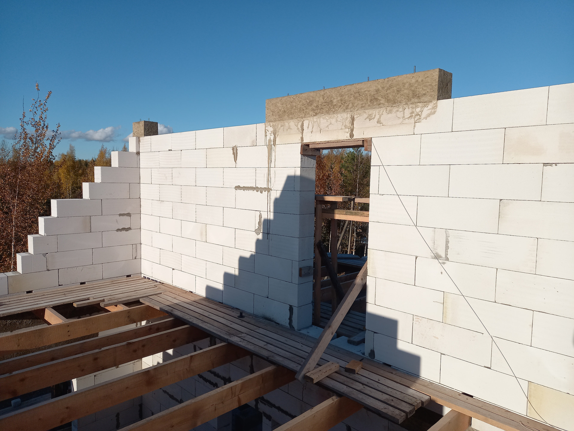 Под домом подушка из песка и гравия 40 см,вокруг дома дренаж выведенный в канаву. Дом стоит на ж/б плите 30 см,под ней утепление из пенополистирола 10 см. Стены из газобетонных блоков 25 см.Высота потолков 3 м на первом и втором этажах. Перекрытие ж/б сборно-монолитное из газобетона.