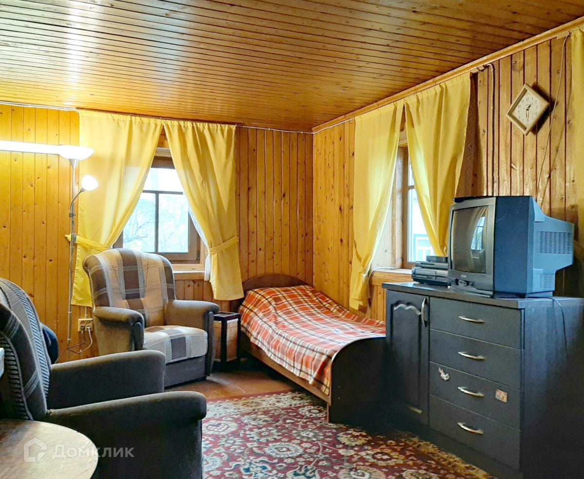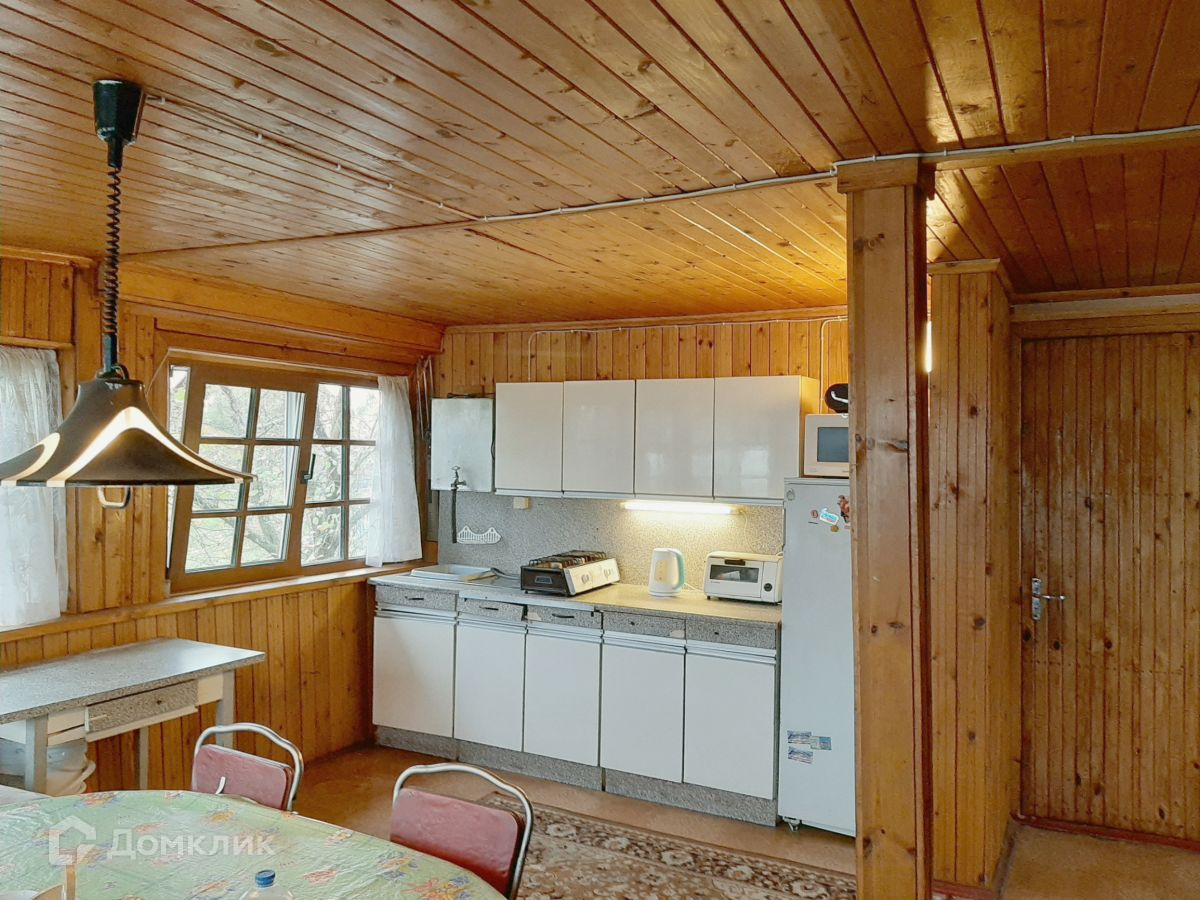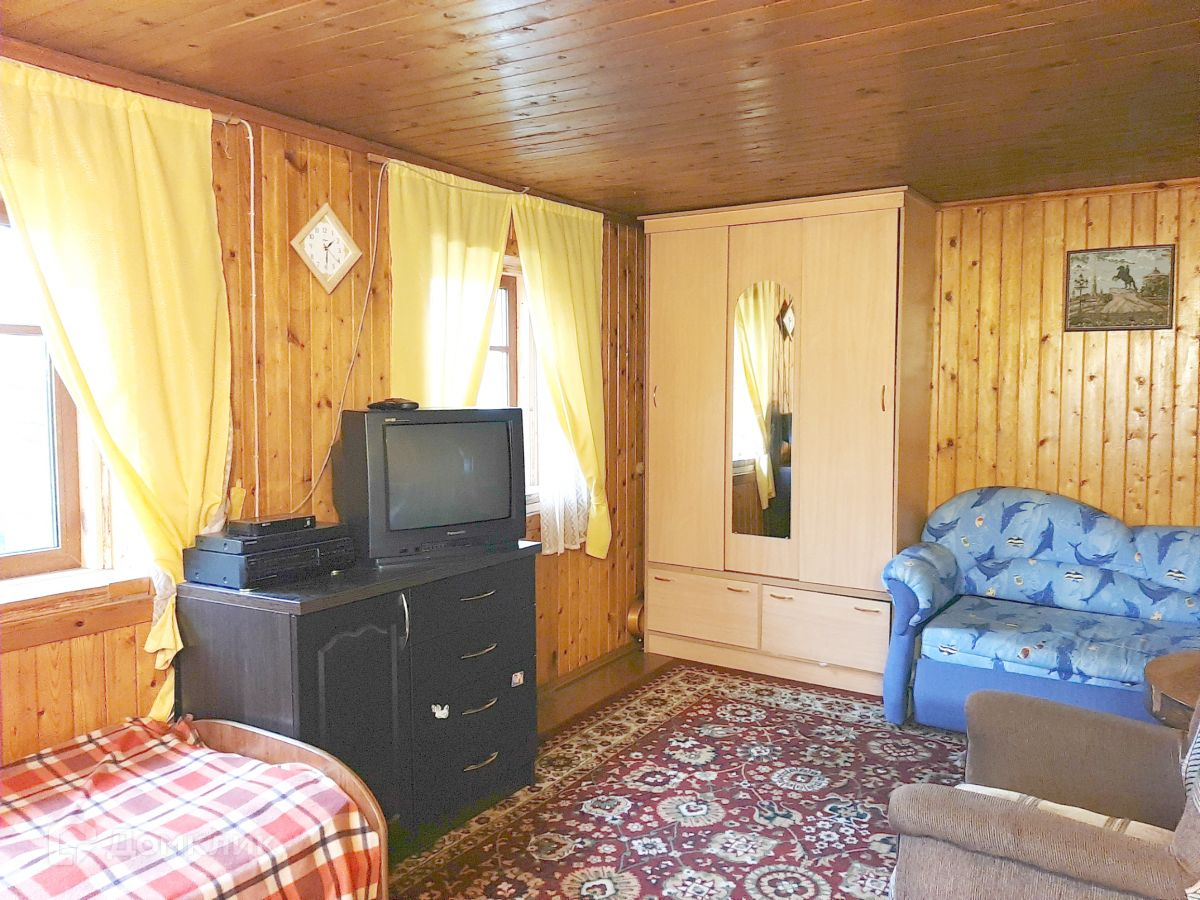 В доме два этажа. На первом этаже расположилась уютная просторная кухня-гостиная и две смежно-изолированные комнаты. На втором этаже, куда ведет удобная деревянная лестница, одна большая изолированная комната и две вместительные кладовки. Отделка внутри вагонкой.