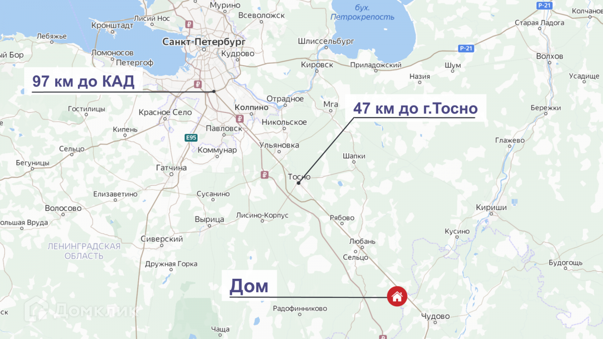 Добраться до СПб можно электричкой, ближайшая станция Бабино-2-в 3,4 км от дома (в сезон с апреля по октябрь курсирует автобус до станции). За 1 час 50 минут Вы доберетесь до центра города без пробок. Либо можно доехать на автобусе № 321 до Любани (30 минут), от Любани до Тосно на автобусе № 320 (40 минут), от Тосно до СПб на автобусе № 610 (45 минут).