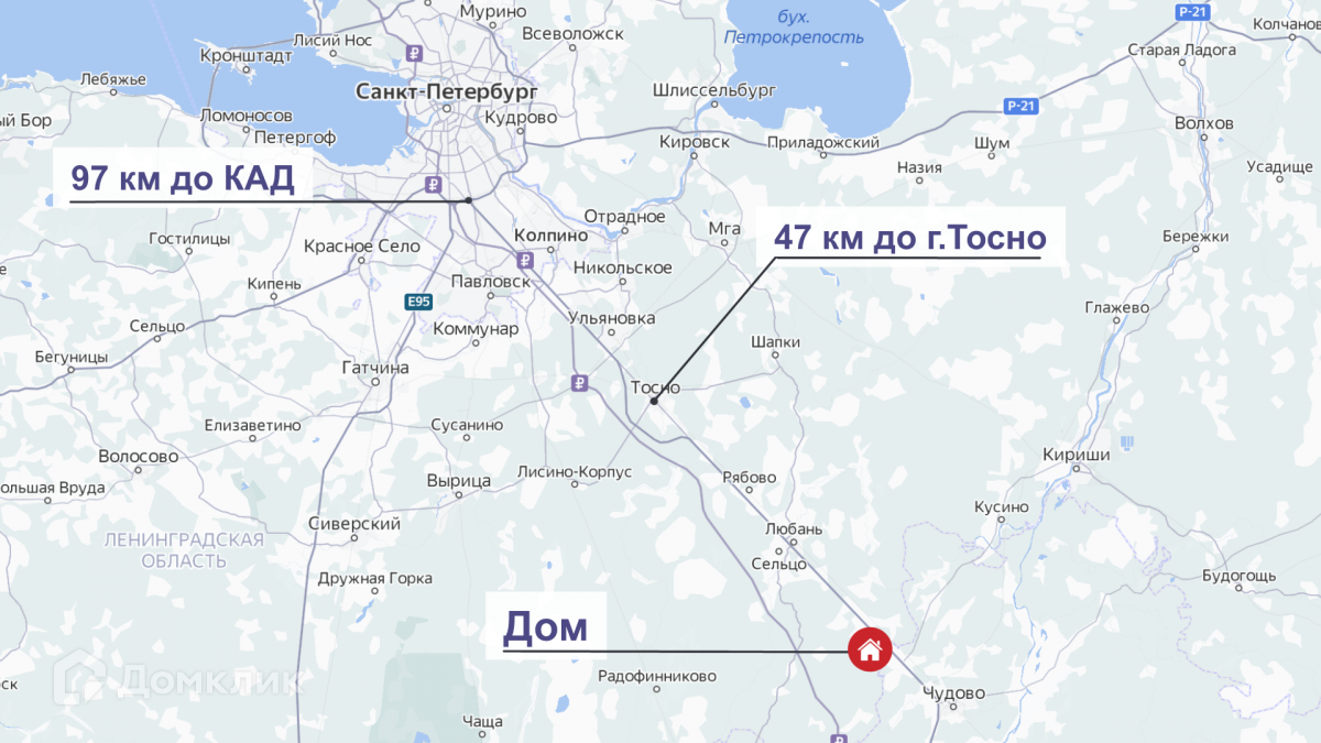 Добраться до СПб можно электричкой, ближайшая станция Бабино-2 в 3,2 км от дома (в сезон с апреля по октябрь курсирует автобус до станции). За 1 час 50 минут Вы доберетесь до центра города без пробок. Либо можно доехать на автобусе № 321 до Любани (30 минут), от Любани до Тосно на автобусе № 320 (40 минут), от Тосно до СПб на автобусе № 610 (45 минут).