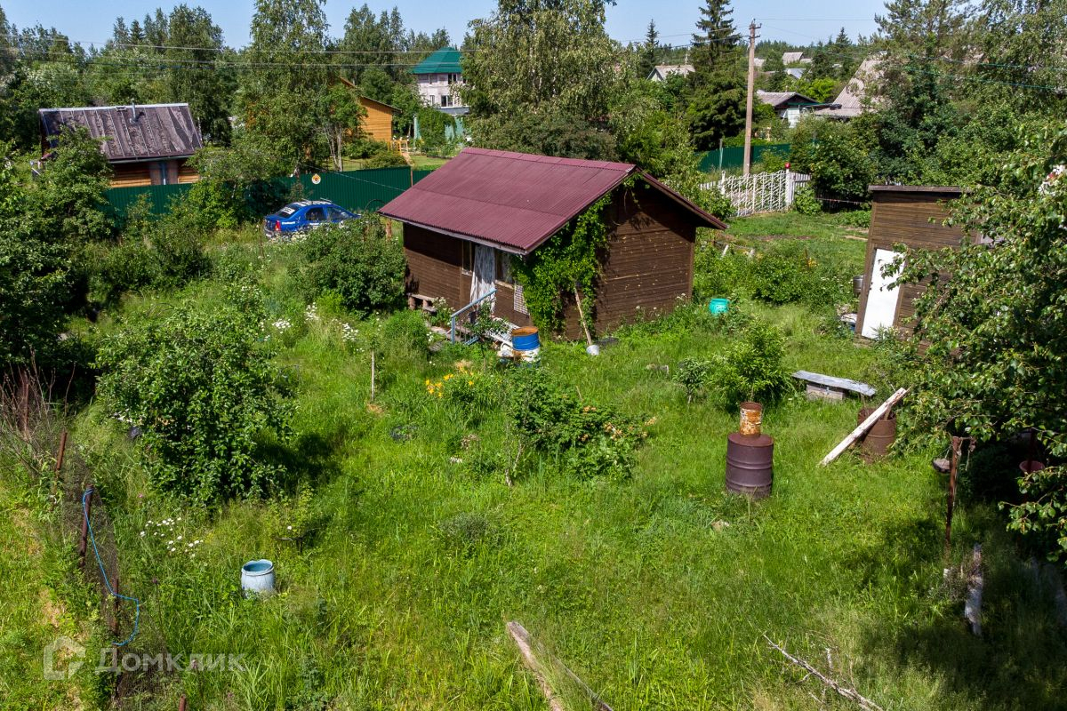 Участок 6 соток, ровный, сухой, правильной прямоугольной формы (30х20м). Организован заезд для автомобиля. Огорожен сеткой рабицей. Есть посадки плодово-ягодных культур, дающих урожай. На участке построен сарай для хранения садового инвентаря.